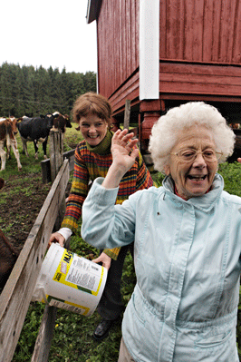 schæfer ved navn Cora. Her lager de sveler, mater dyrene, strikker,