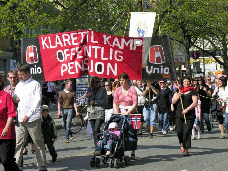 1. maitogene landet over fanet pensjonsaken høyt. Et døgn tidligere var ble det brudd i årets forhandlinger. Årsak: tjenstepensjonen.