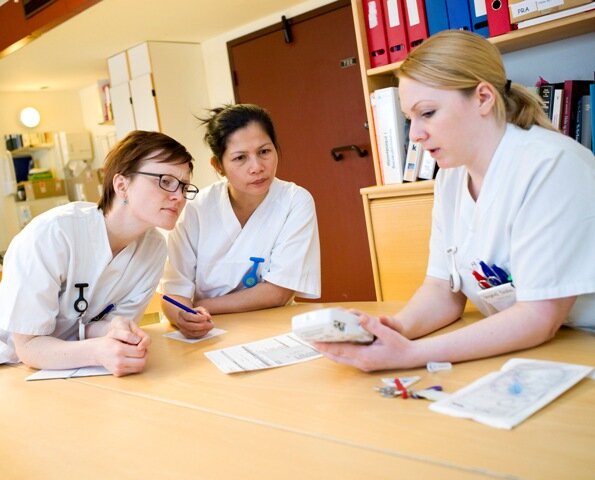 – På den måten får alle de 30-40 sykepleierne ved avdelingen mulighet til å oppdatere seg. Og vil man ha noe repetert, er det bare å dukke opp en gang til. Noen ganger er det bare én sykepleier innom, andre ganger kan det være fem, forteller Berntsen.