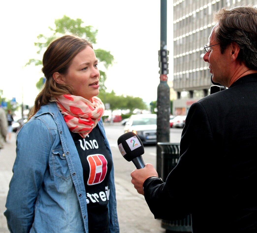 Klokka er åtte om morgenen på streikens første dag i Oslo. Silje Naustvik står utenfor Lillohjemmet hvor det er tatt ut 23 sykepleiere. TV2 sender direkte, og hun får mikrofonen stukket under nesen.