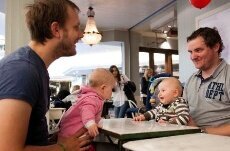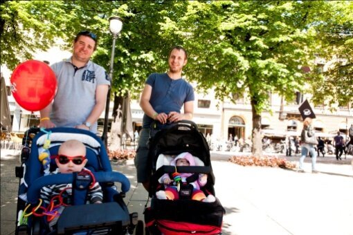 Så ikke far På kafeen i Oslo triller både menn og kvinner forbi med vogn.