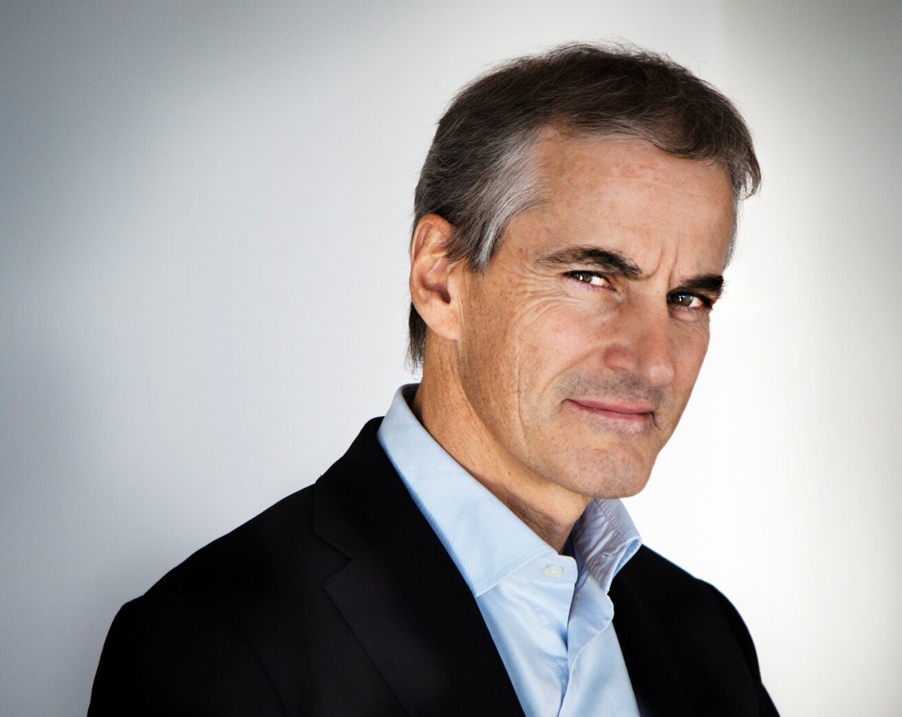 Noen timer etterpå kommer Støre til toppetasjen på sin arbeidsplass for å la seg fotografere.