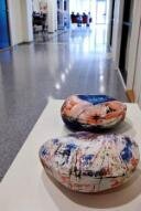 – Og så var det viktig for meg at kunsten kan tas på og ikke stenges inne bak glass og ramme. Steinene er laget av porselen og jeg tenkte først at de skulle være så små at de fikk plass i hånden, men Mette foreslo at de skulle være så store at flere kunne ta på dem samtidig.