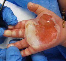 – Barnehendene har så små strukturer. Når såret gror, har huden i håndflaten en tendens til å trekke seg sammen.