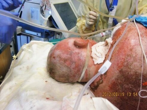 70 prosent av kroppen er forbrent, mest på bryst, rygg og armer. Sjansen for å overleve er 10 prosent.