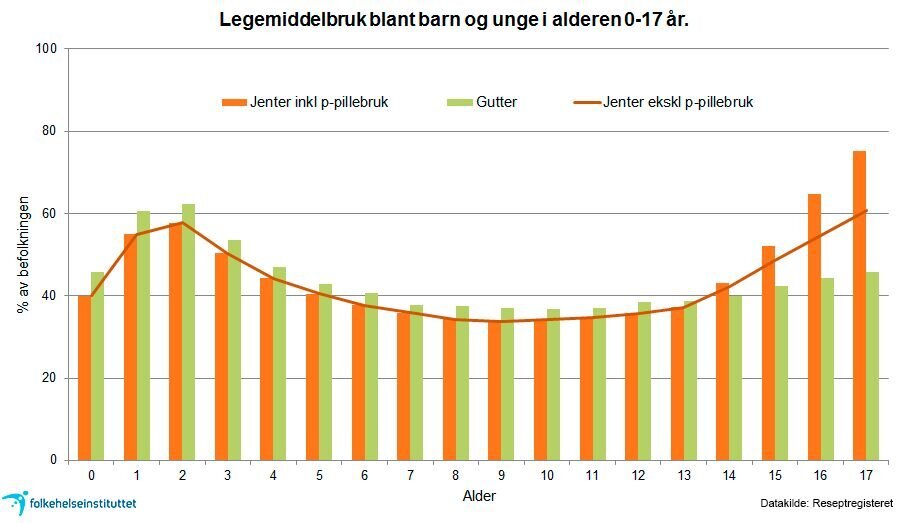 I følge reseptregisteret skyldes økningen av legemiddelbruk hos jenter fra 14-årsalderen, bare delvis p-pillebruk. En studie har vist at bruken av sovemidler økte i perioden 2004-2011, hovedsakelig på grunn av en kraftig økning i bruk av melatonin.