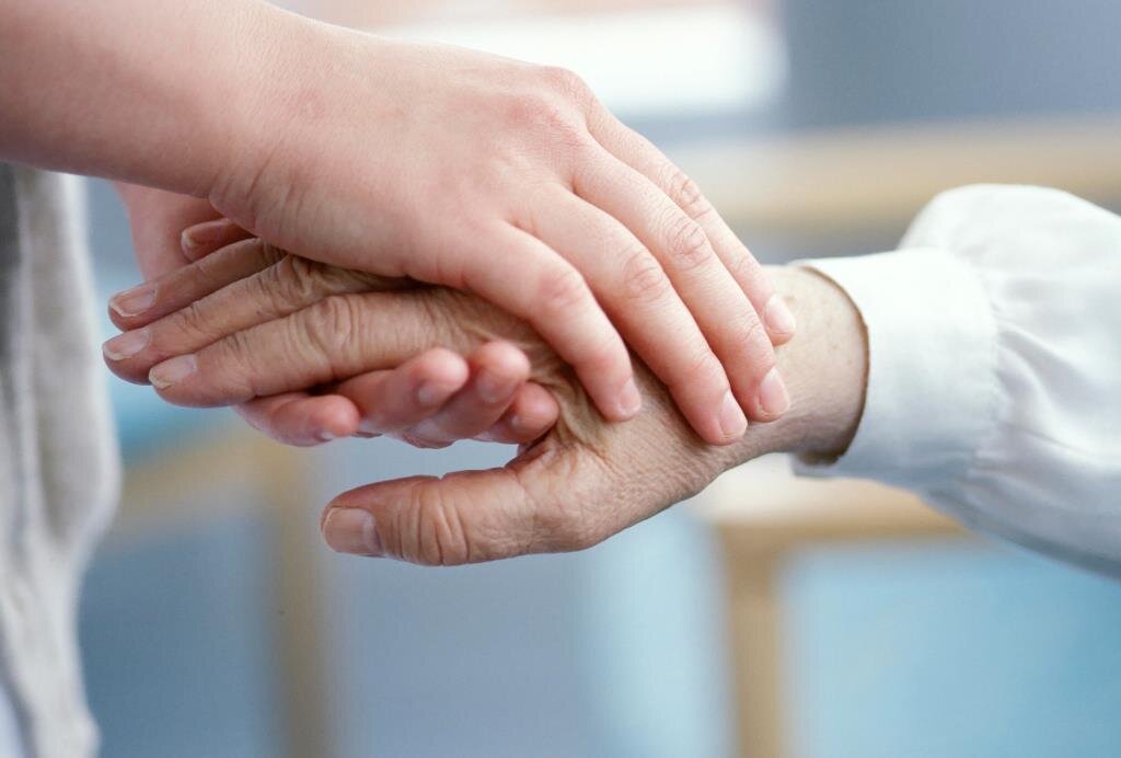 Bildet viser to hender som holder hverandre