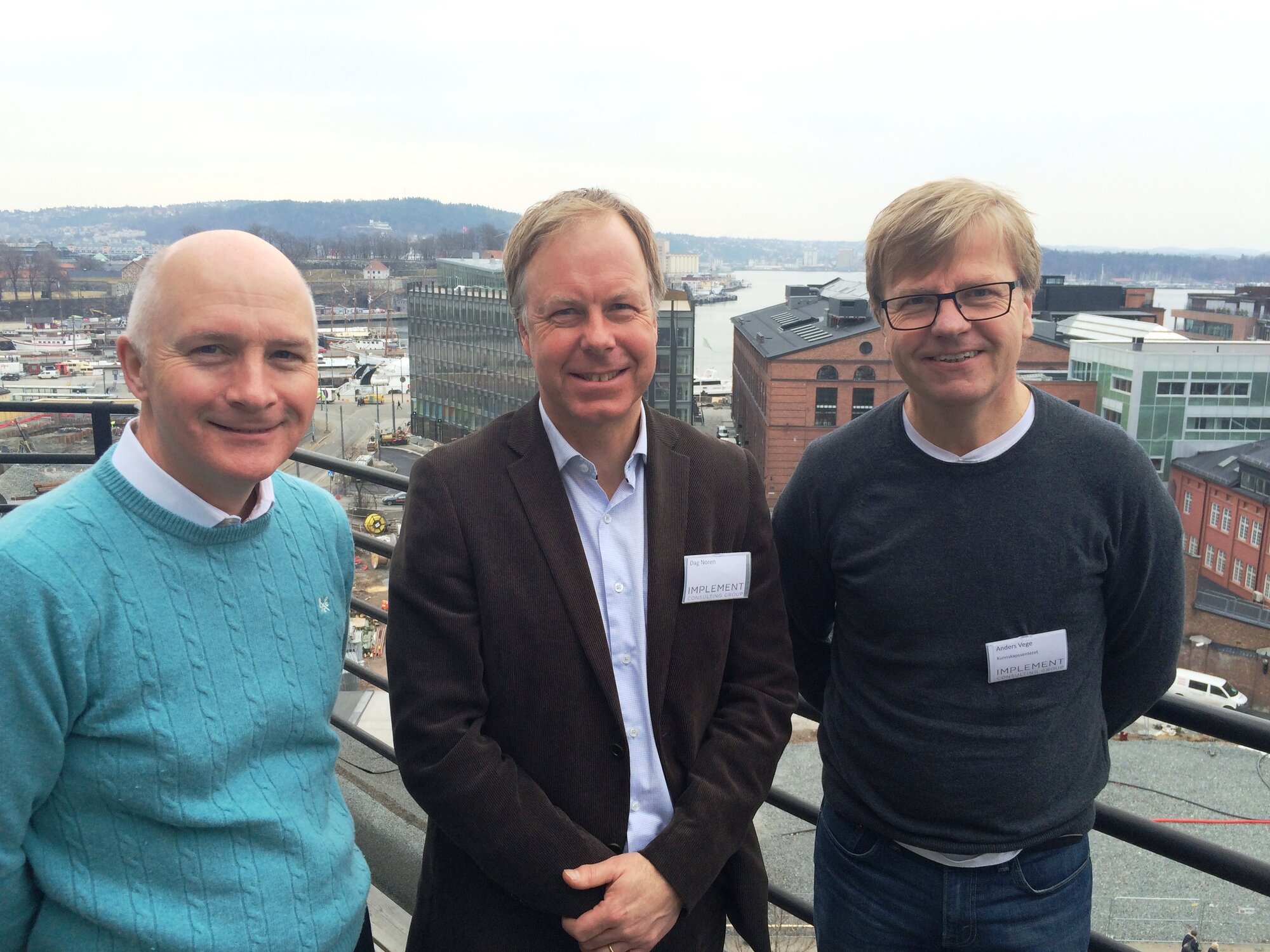 Sammen med svenske Dag Norén fra Implement Consulting Group (ICG) og norske Anders Vege fra Nasjonalt kunnskapssenter for helsetjenesten, foredro han i midten av mars på en inspirasjonsfrokost i ICGs regi under vignetten «Bærekraftige og brukerorienterte helse- og omsorgstjenester».