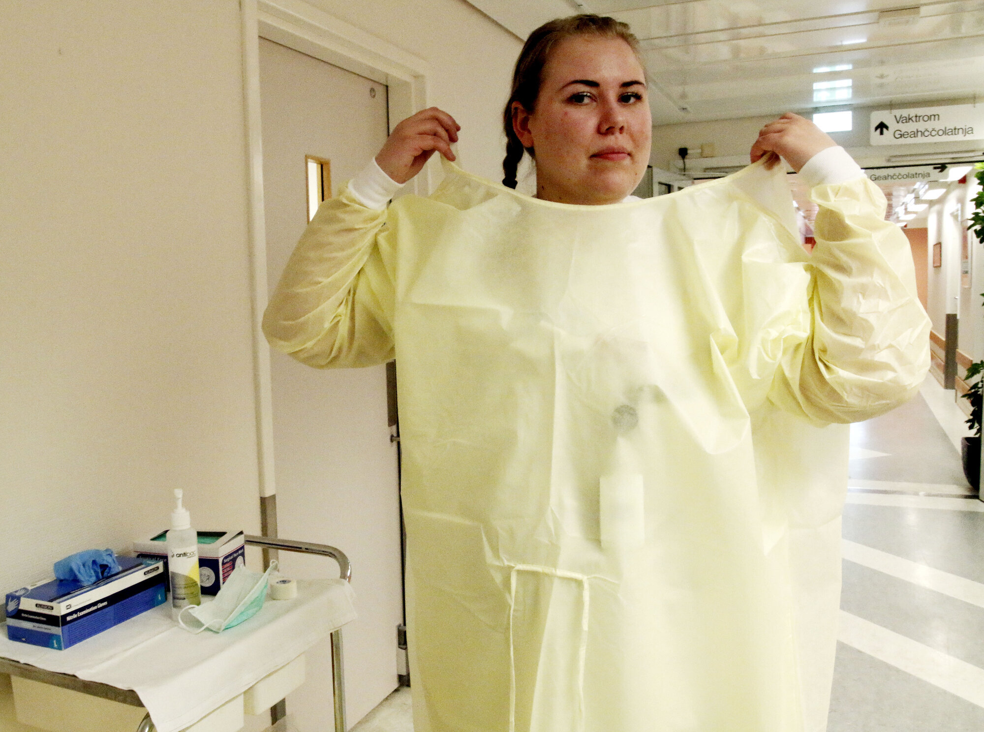 – De fleste andre sykehus i landet har allerede gått over til gule engangssmittefrakker,  sier Annelin Lyshoel. Hun er sykepleier og seksjonsleder ved Smittevernsenteret, Avdeling for mikrobiologi og smittevern ved Universitetssykehuset Nord-Norge (UNN).