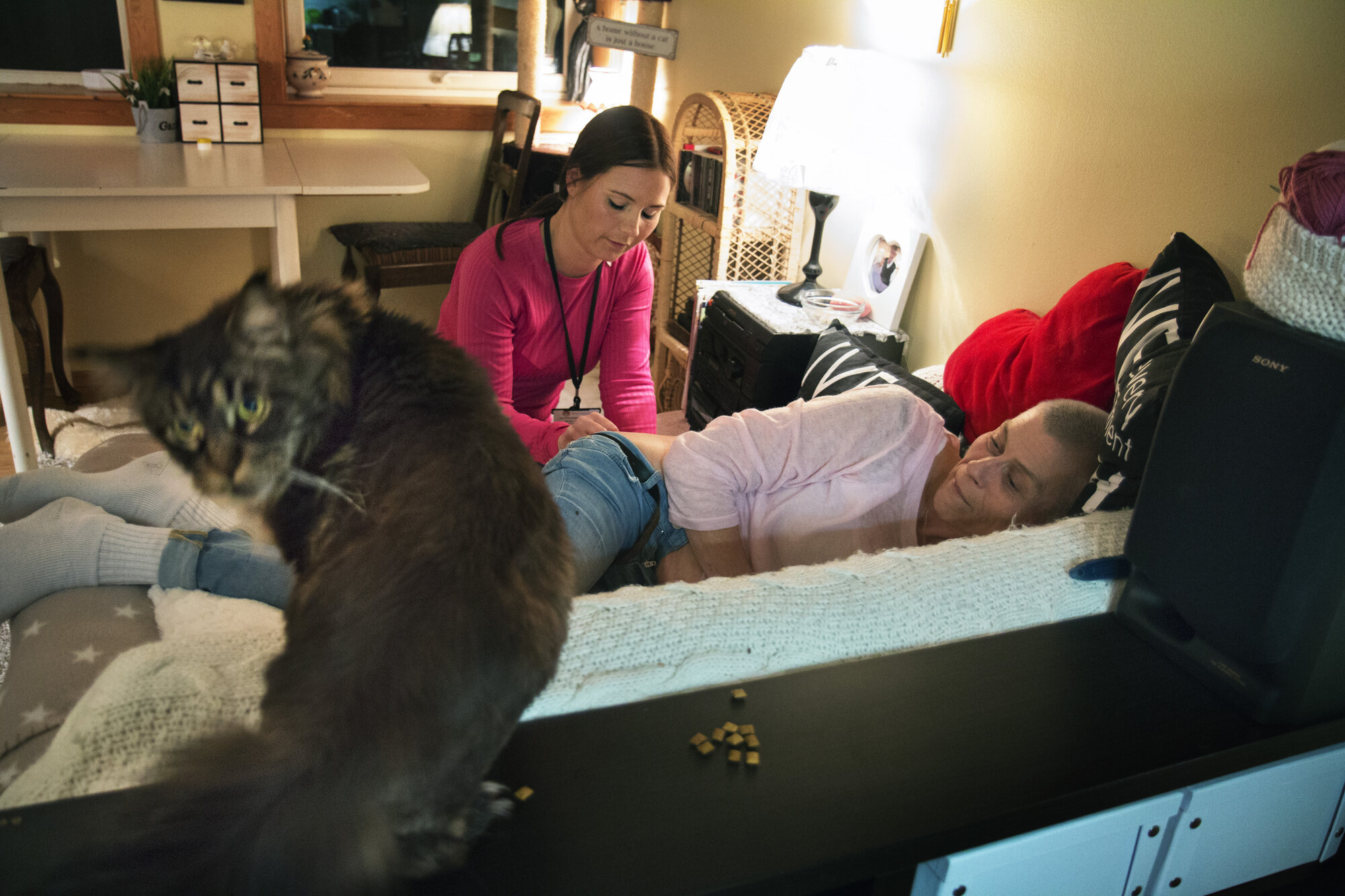 Kreftpasienten har ventet lenge på dem her på soverommet, men han klager ikke. Han er bare takknemlig for å få hjelp.