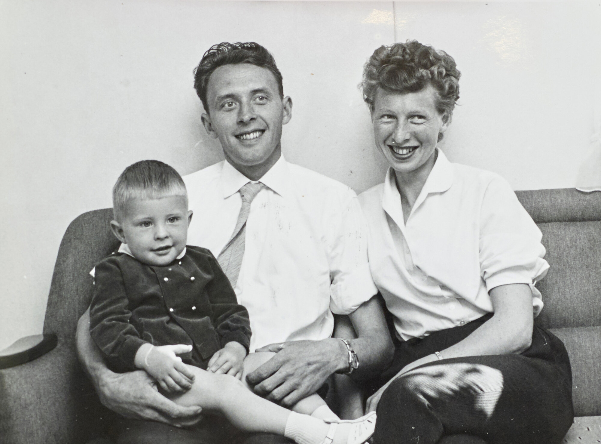 Søsteren min seilte i utenriksfart på den tiden­, og hun sendte hjem en masse fine klær til Trond. Jeg husker så godt et nydelig blått pledd og et silke­teppe til vogna. Og far da, han var ikke sein om å reise til Tønsberg og kjøpe den fineste barne­vogna han kunne finne. Ja, den var fin den vogna, og blå selvfølgelig. Det er sju års opphold mellom guttene mine. De er født i 1960 og 1967. Den andre gangen startet riene midt på dagen. Vi skulle til tante, for hun skulle passe Trond når jeg måtte inn. Venninnen min var hos meg, og det var mannen min glad for, for han turde ikke ha meg der hjemme alene. Han ga klar beskjed til henne at hun slett ikke fikk dra hjem, for det ble for skummelt.
