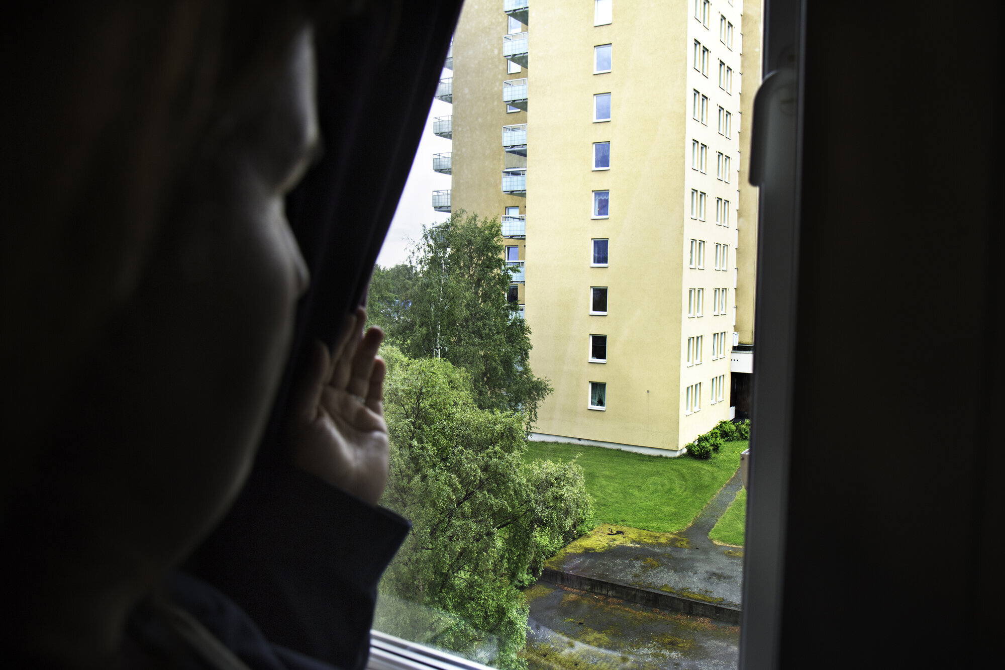 Fra sitt eget soverom kan Inger se ned på mors leilighet.