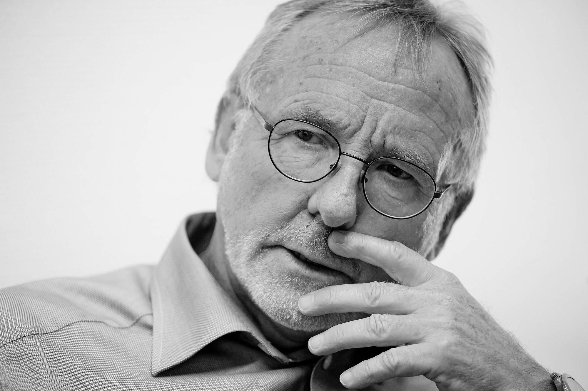 utsikt til Stortinget inviterer til. Han bøyer seg forover og borer