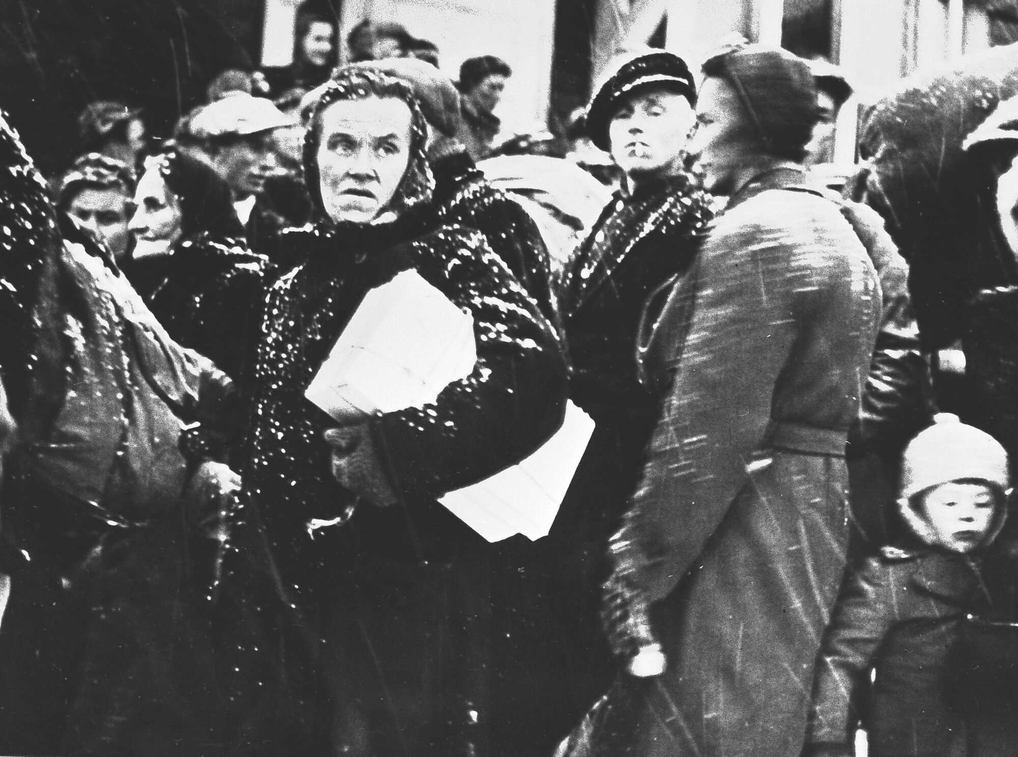 En oktoberdag i 1944 sto disse norske flyktningene i matkø i Kiruna.