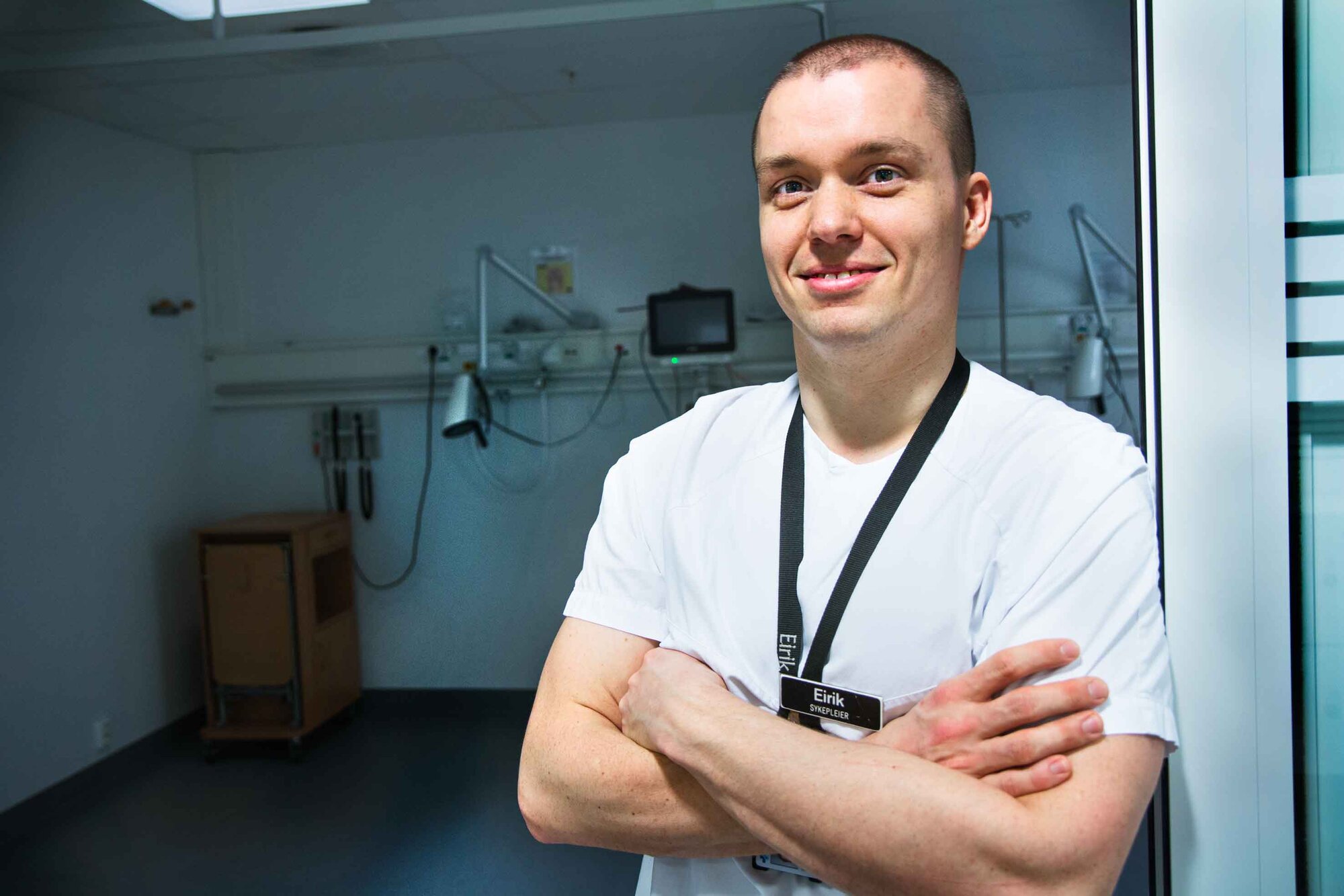 For øyeblikket er det rolig på akuttmottakets observasjonspost. Ingen hoftepasienter er i sikte. Sykepleier Eirik A. Stokke er dagansvarlig, men har ellers også turnus i mottaket.