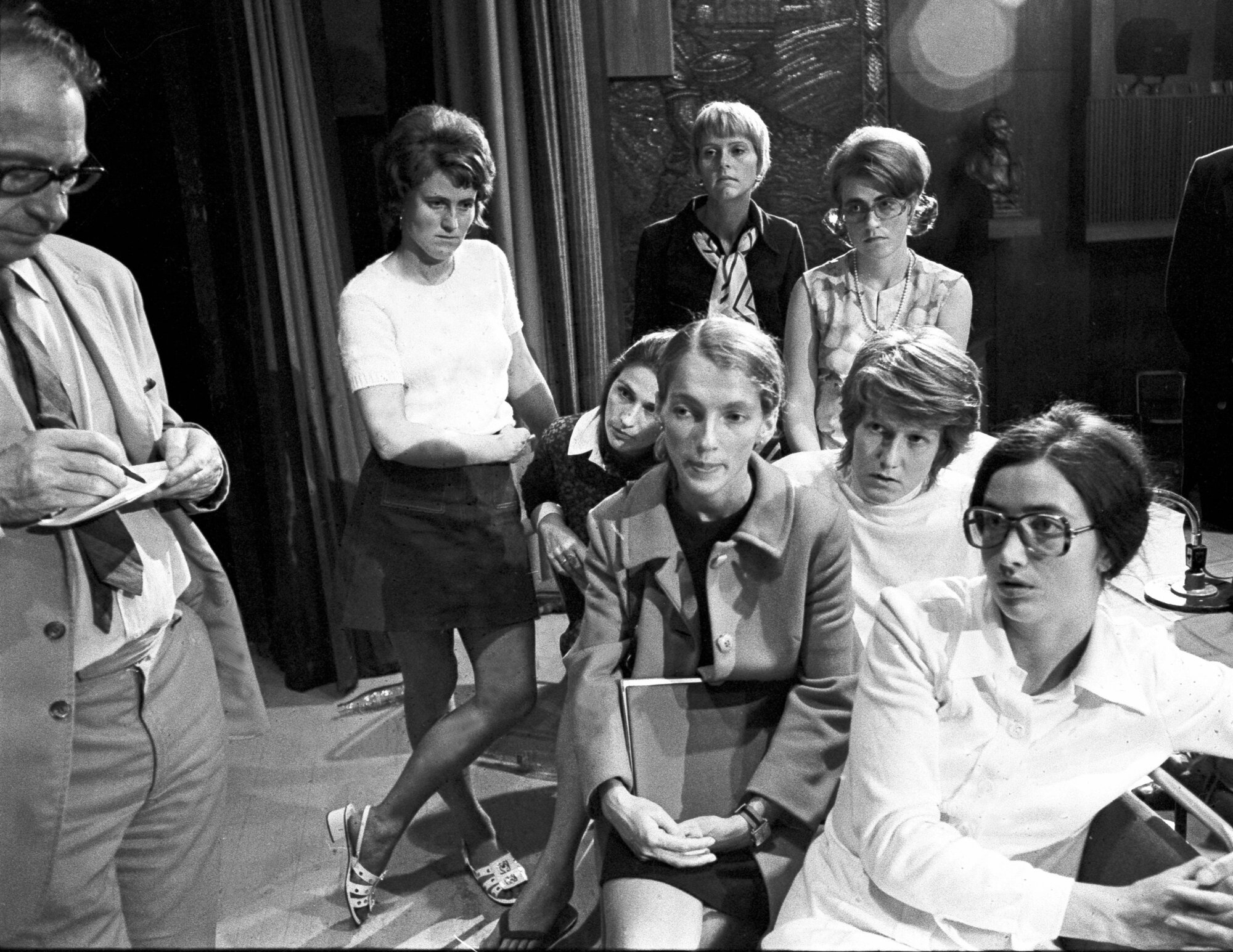 18. september gikk derfor 311 sykepleiere ved sju sykehus på Østlandet ut i streik. Etter to uker, innså sykepleierne at slaget var tapt. På bildet ser vi ledelsen for sykepleieaksjonen er samlet: Bjørg Wendelboe, Inger Johanne Jørgensen, Anne Lise Bergenheim, Eva Heyerdahl, Anne-Marie Grøgaard, Christin Torstensen og Aud Vinje. De orienterer pressen om hva som kom ut av allmannamøtet. Det hører også med til historien at de sju kvinnene i aksjonsgruppen ble stevnet for Arbeidsretten, men det fikk i praksis ingen konsekvenser for de modige sykepleierne.