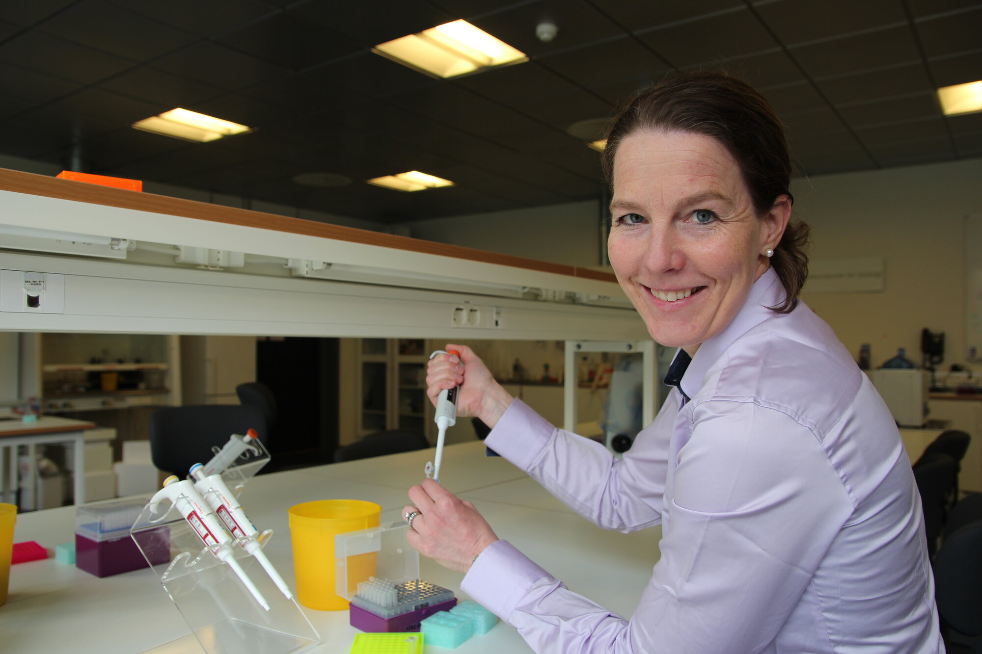 Bildet viser Tone Fredsvik Gregers med skolelaboratorieutstyr.