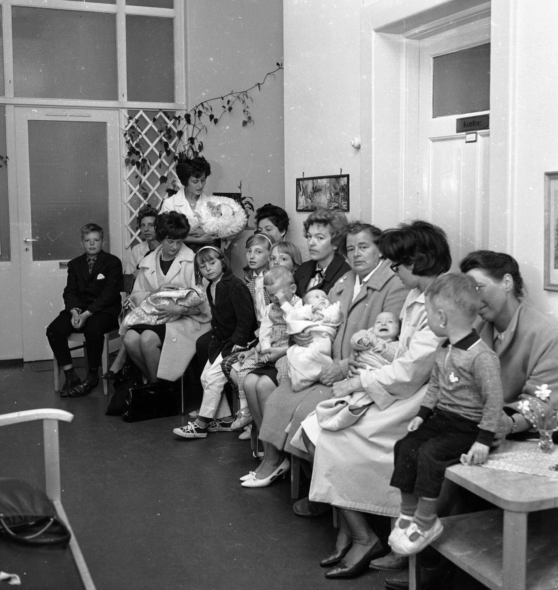 Aftenpostens journalist omtaler dette som «ventegangen» på barne- og kvinneklinikken på Ullevål sykehus. «Den tjener som et felles venteværelse for overlegen og samtlige leger ved avdelingen», heter det av billedteksten. Fotografiet ble tatt 6. mai 1964. Bildet står på trykk i siste utgave av Helsesøstre (2-2016) som utkom med Sykepleien 19. mai.