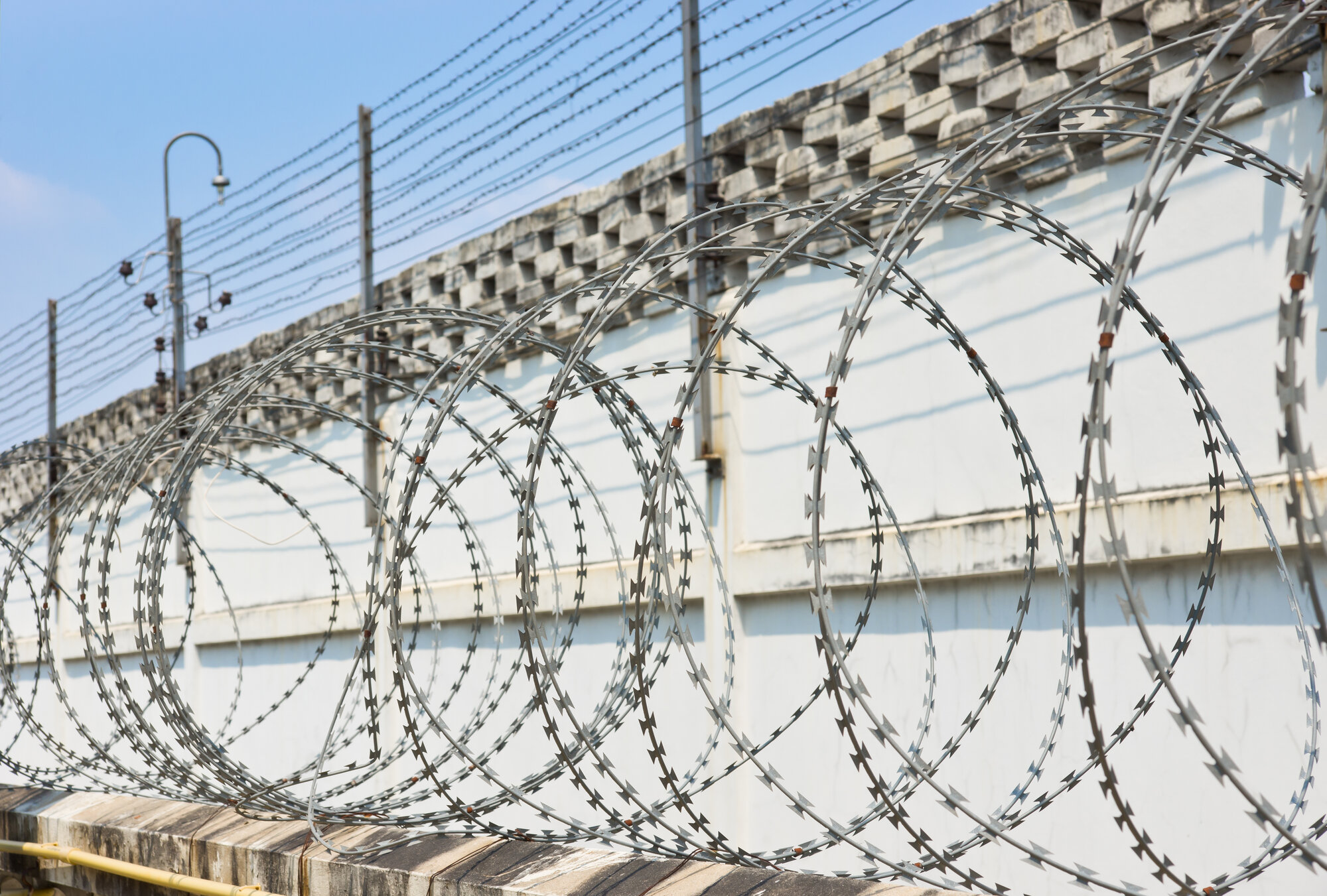 Bilde av piggtråd og gjerde rundt et fengsel