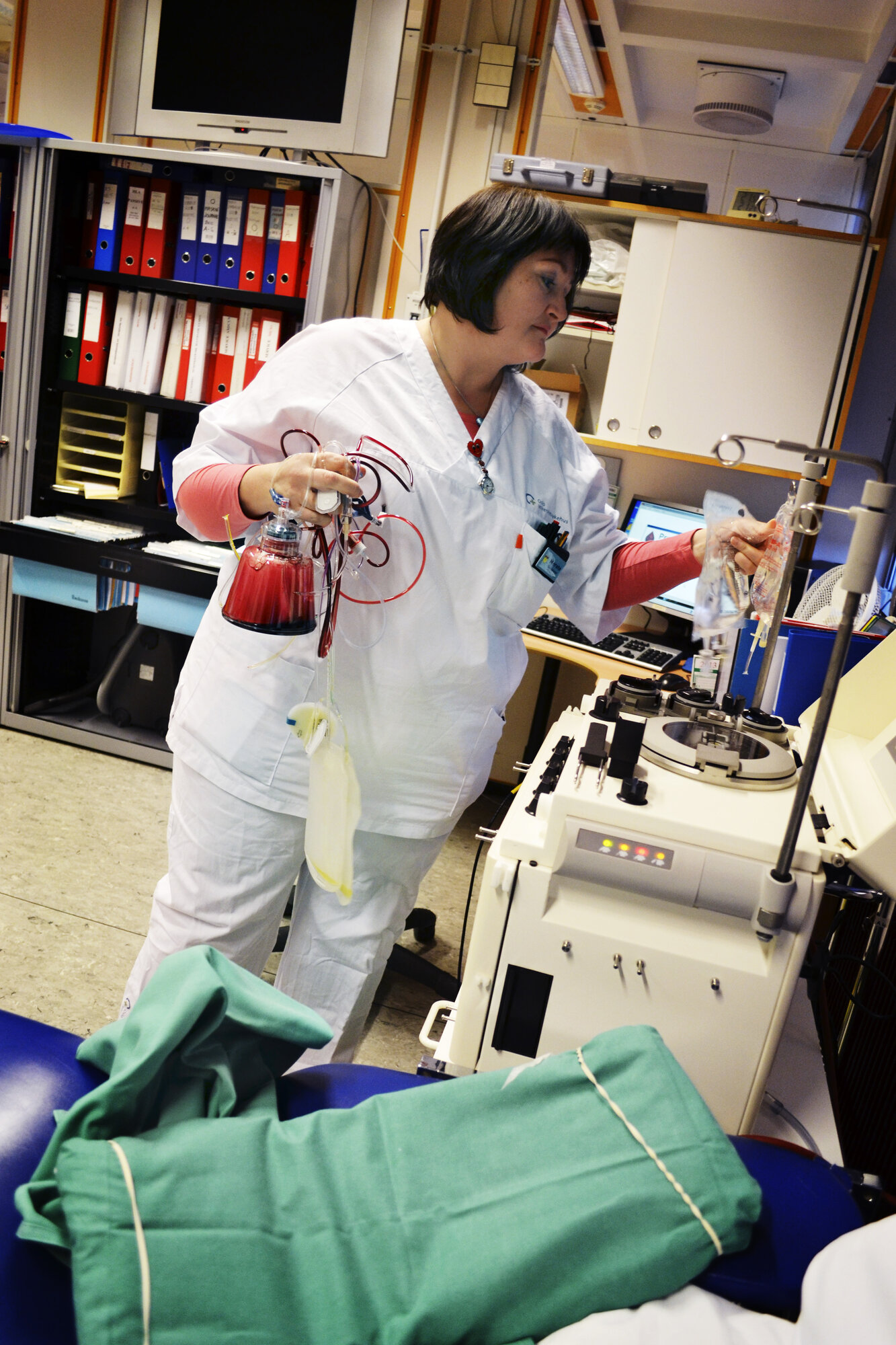 Å tappe blod fra blodgivere er hovedoppgaven min. Men for å kunne gi blod, må man være frisk. Vi sender hjem dem som ikke er det. Vi vil derimot gjerne at de friske giverne skal komme tilbake, for de er vi avhengige av. Dette er helt motsatt av det de fleste sykepleiere jobber med, men noe av det som gjør det givende.