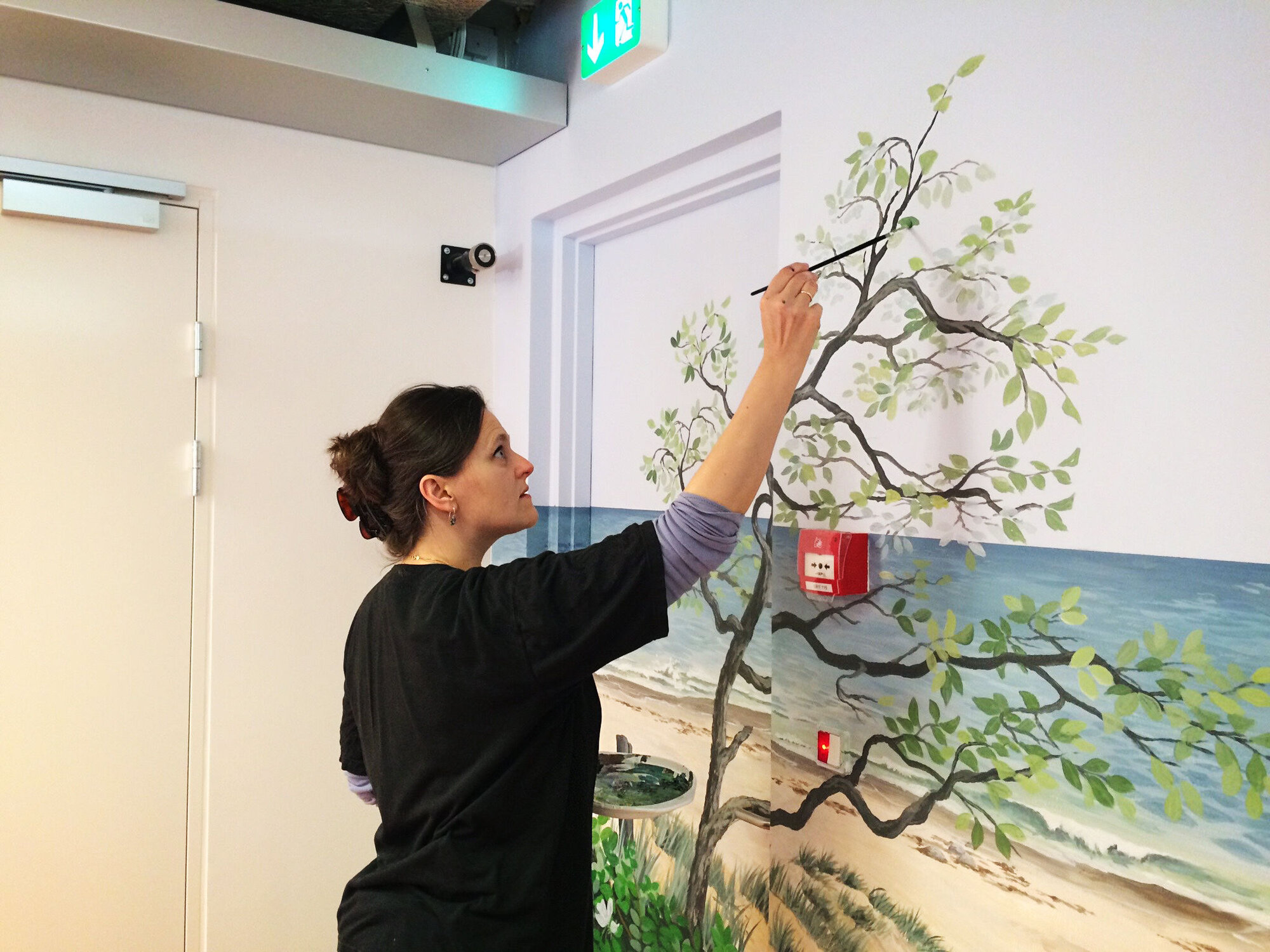 Kunstner Lena Heegaard maler på dører for å forhindre at demente vandrer av gårde. Så langt har hun malt omtrent 75 dører på ulike sykehjem i Danmark.