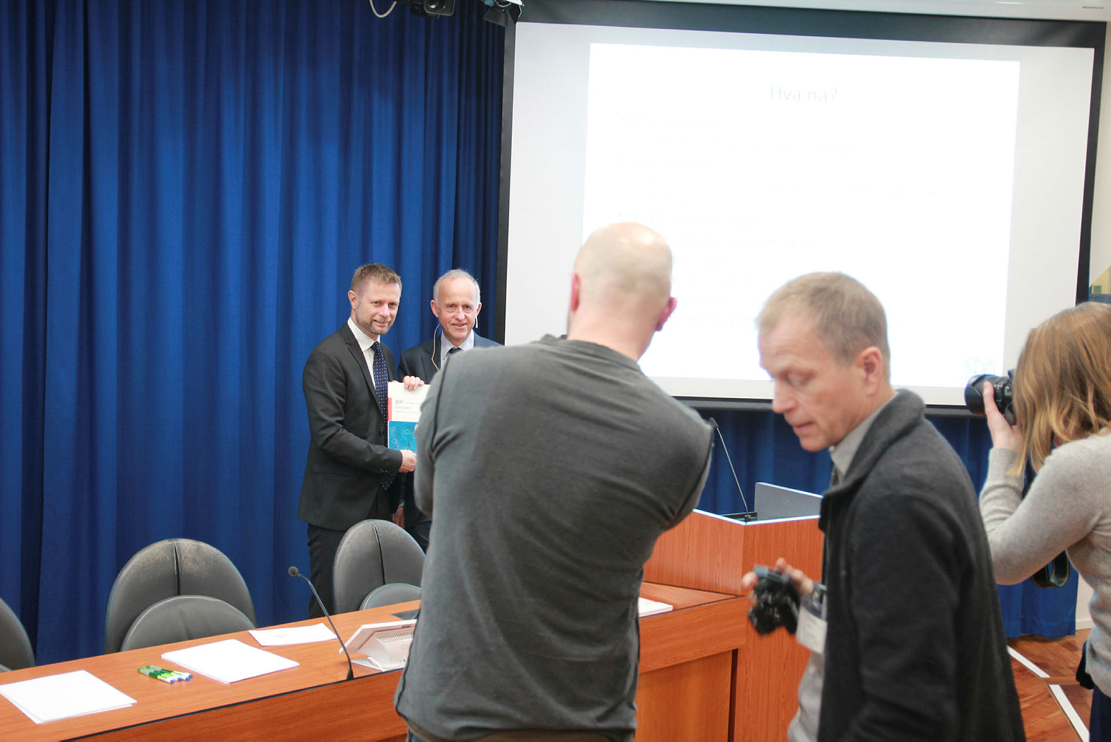 Helseministeren Bent Høie fikk i dag NOU-en «På liv og død» av utvalgsleder Stein Kaasa.