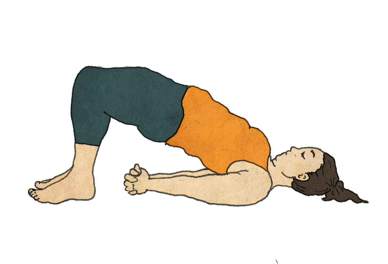 Løft så opp hele bekkenet, slik at også deler av ryggen løfter seg. Ikke ha press i nakke.