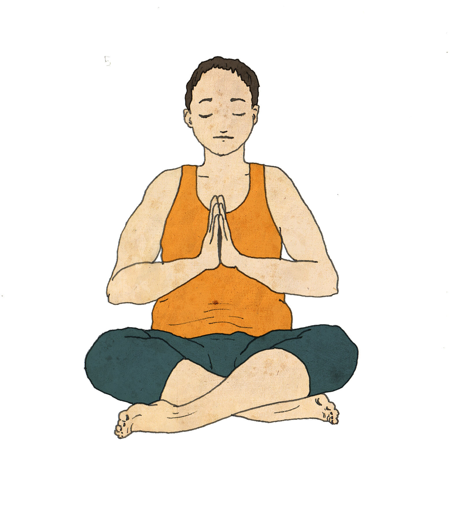 så langt det lar seg gjøre, fortsatt mens hendene holdes i anjali mudra.