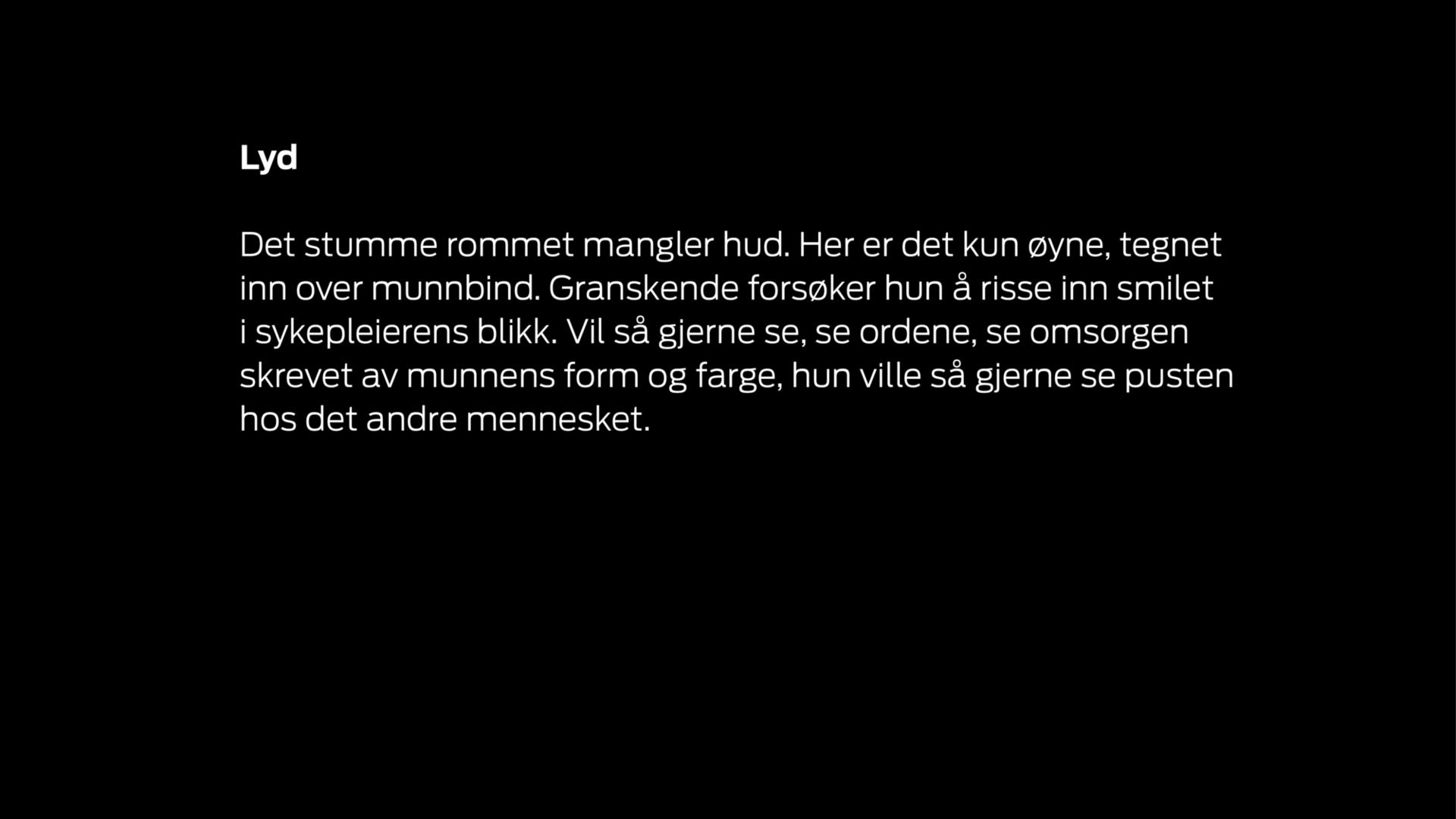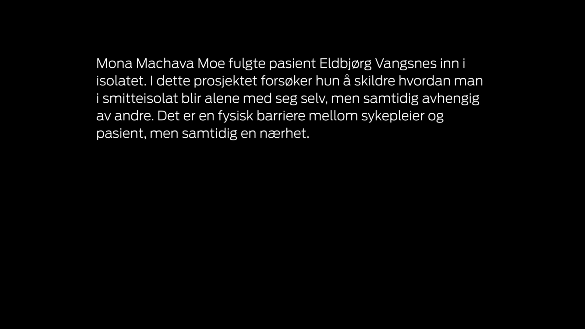 Om fotografen: Mona Machava Moe er utdannet både fotograf og sykepleier. Hun opplever de to yrkene som beslektet. Begge handler om å forsøke å se mennesker og å forstå og formidle deres følelser. www.monamoe.com