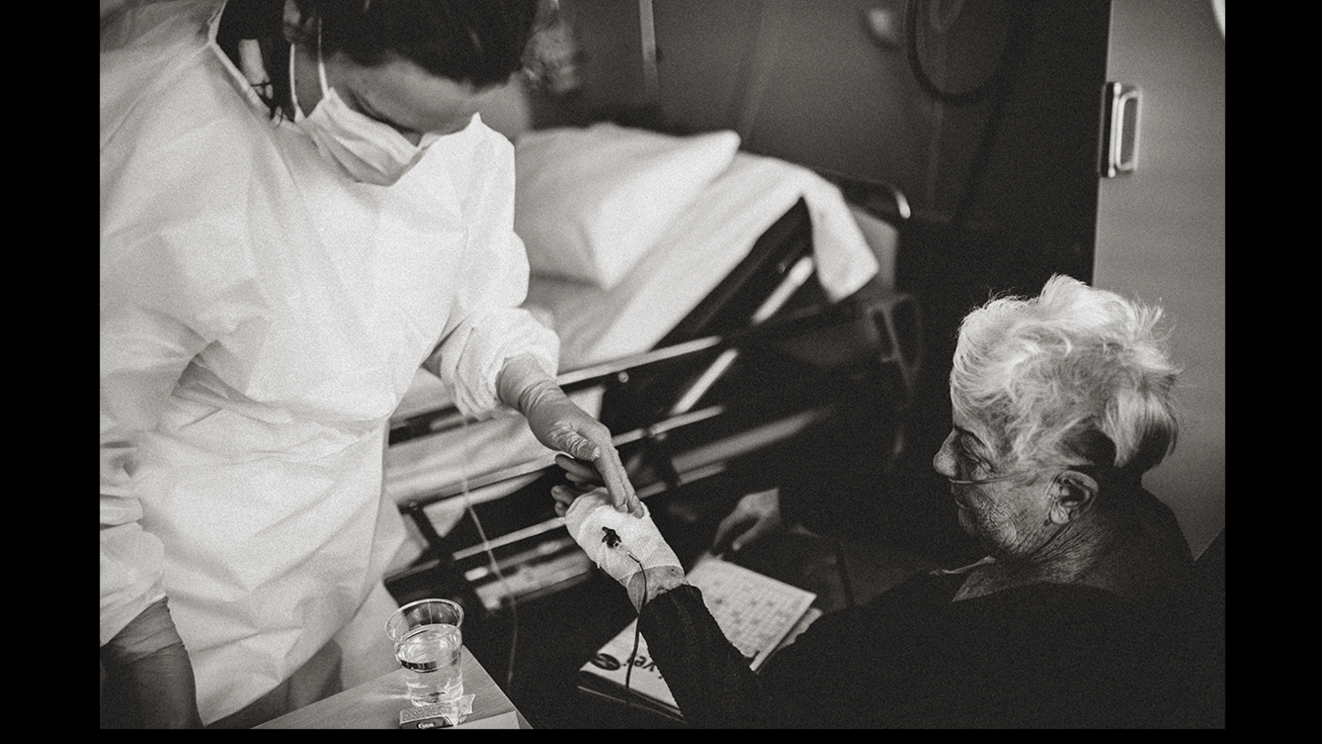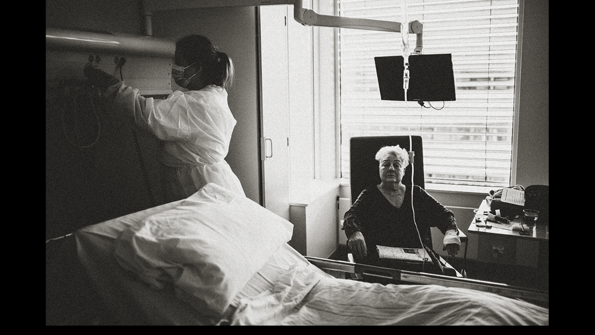 Mona Machava Moe fulgte pasient Eldbjørg Vangsnes inn i isolatet. Hun ble isolert på Sykehuset i Vestfold. Bak masken møtte hun sykepleier Nicoline Olavsen.