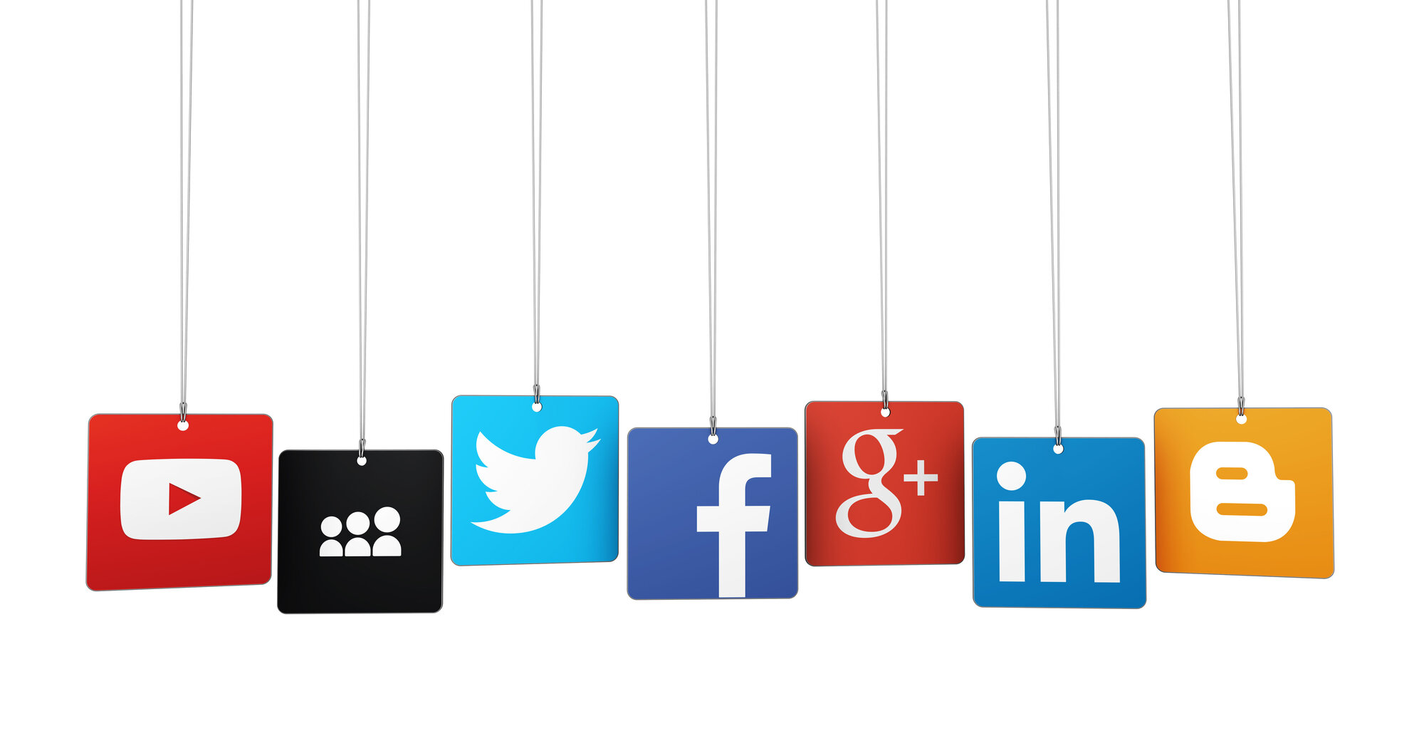 Illustrasjonen viser ikonene for ulike sosiale medier.