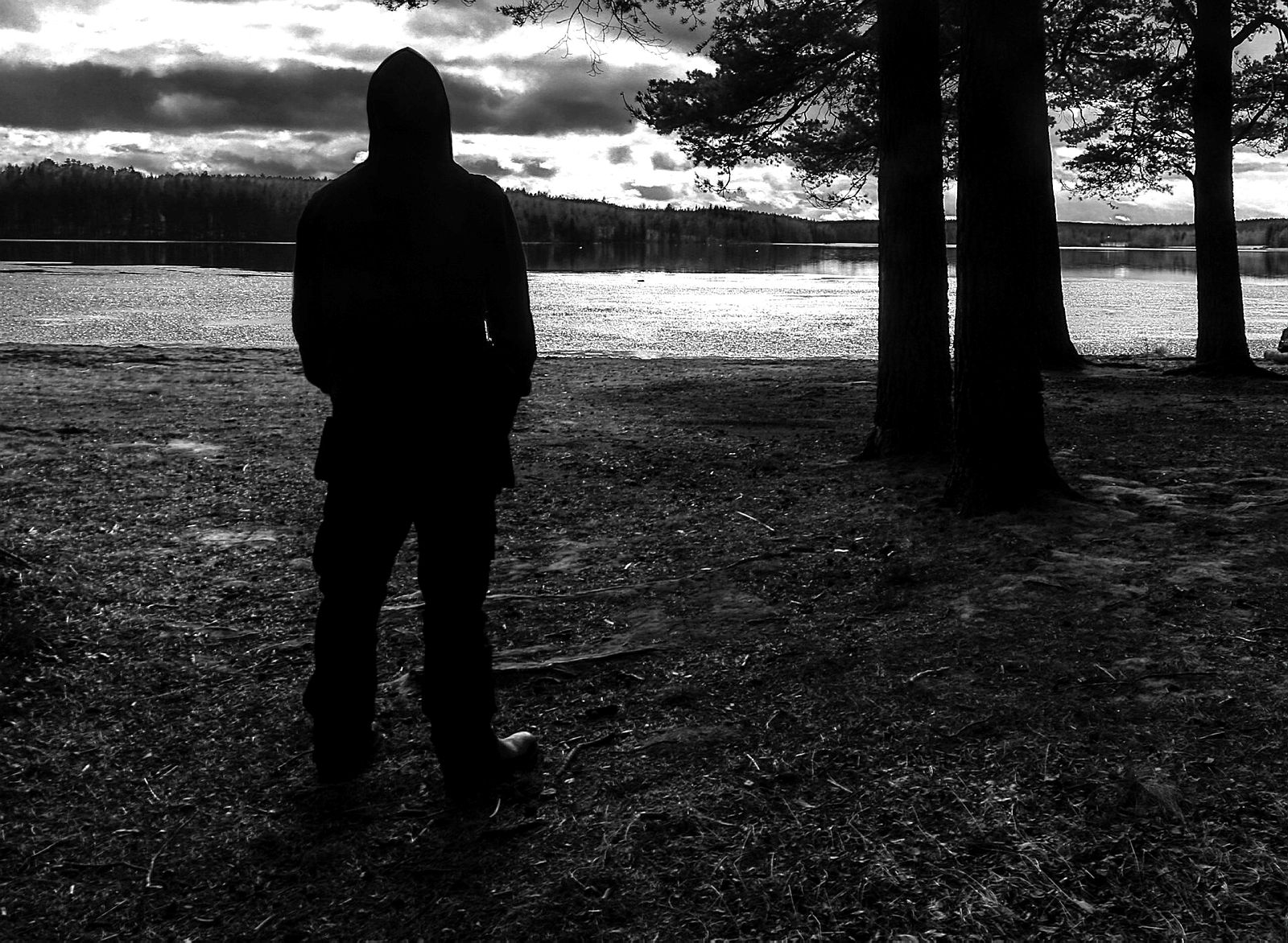 Viser anonym skikkelse som står og ser ut over et vann.