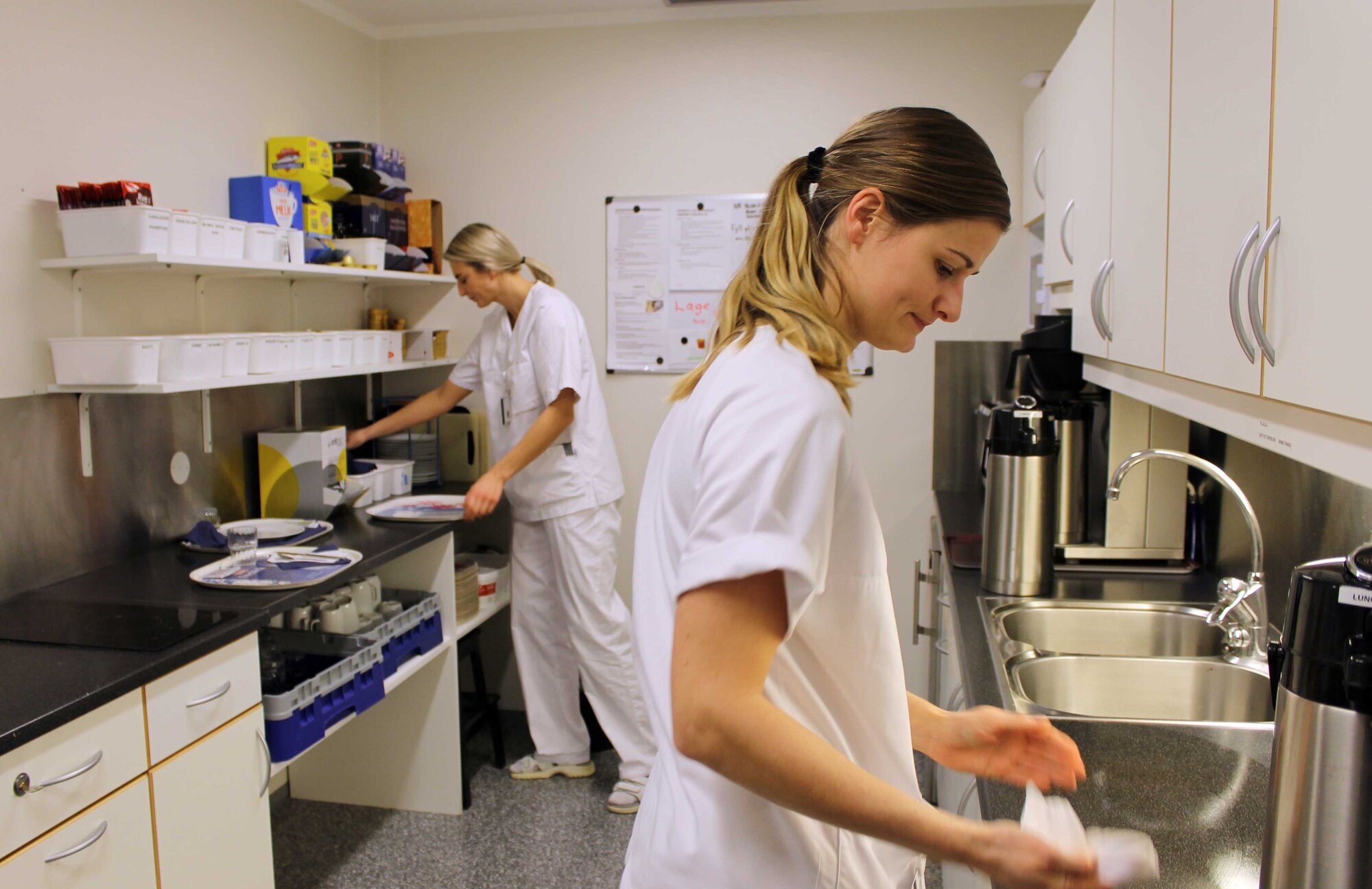 – Vi fordeler oppgaver. Sykepleierne går på medisinrommet. Det å kunne være på kjøkkenet syns jeg er en god ventil. Du kan lukke dørene og senke skuldrene litt. Noen avdelinger har kjøkkenassistenter og sparer tid på det, sier Mollestad.