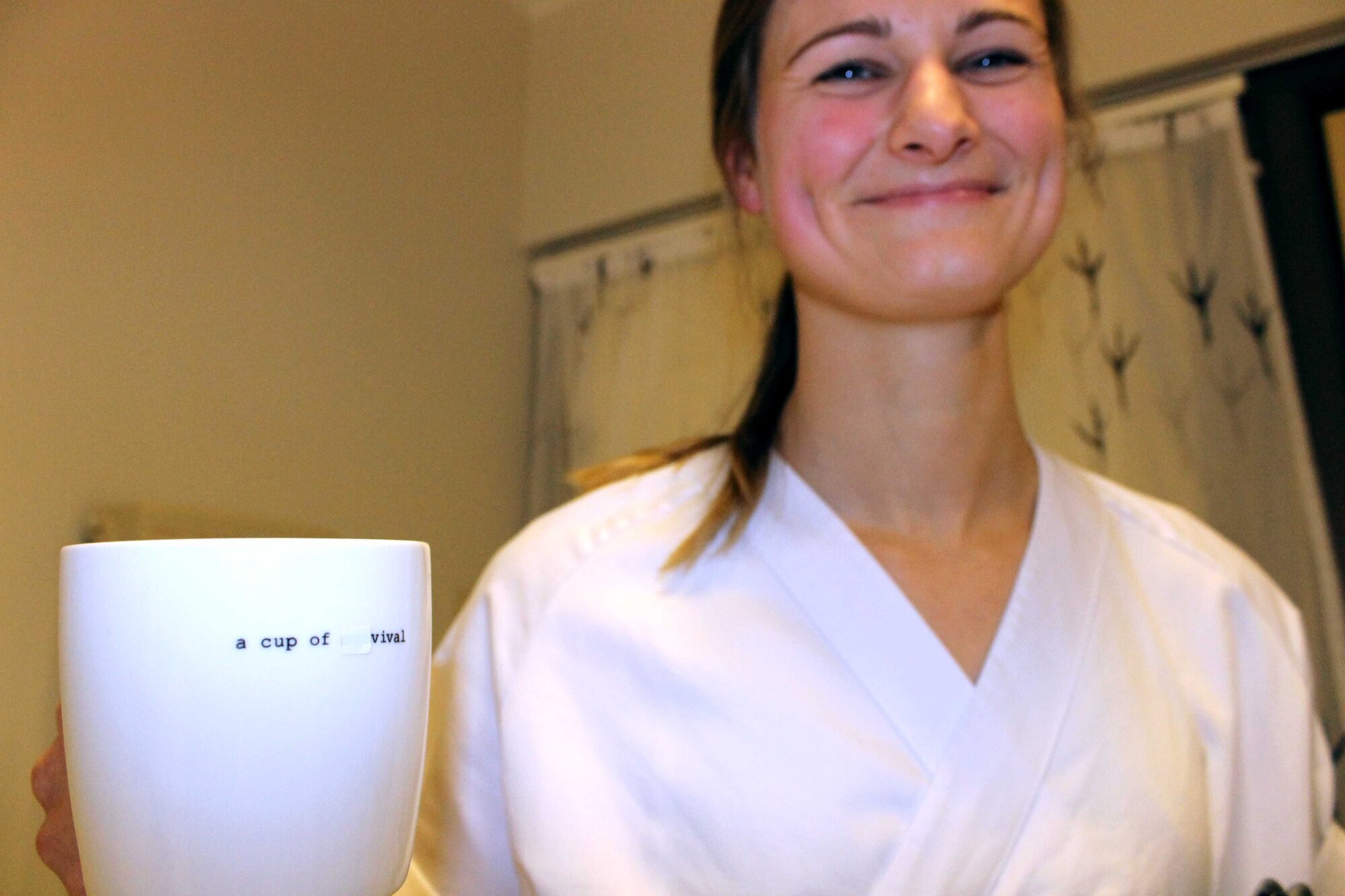 – Du må se denne. Kristine har denne koppen på vaktrommet, smiler Lohne.