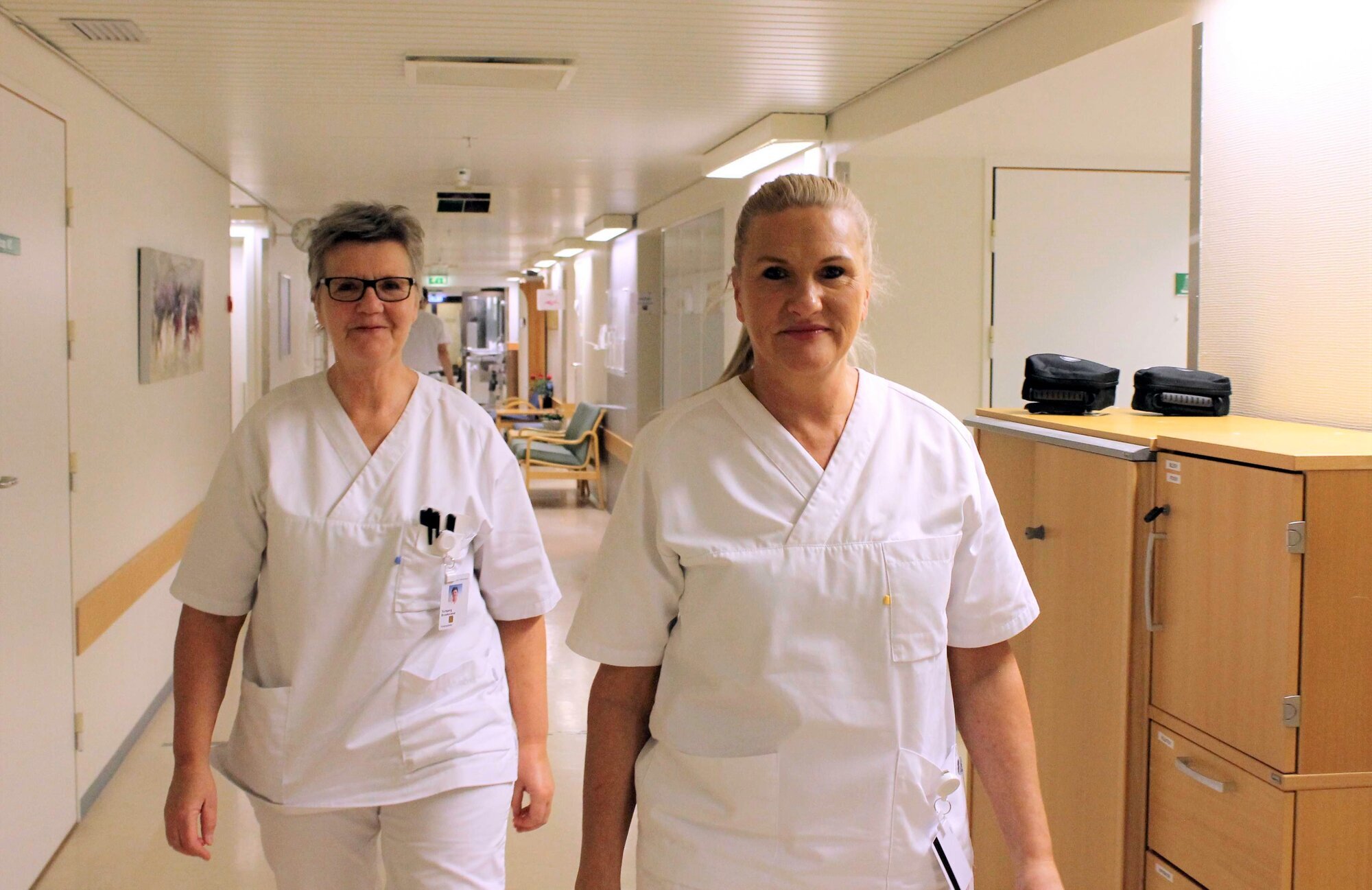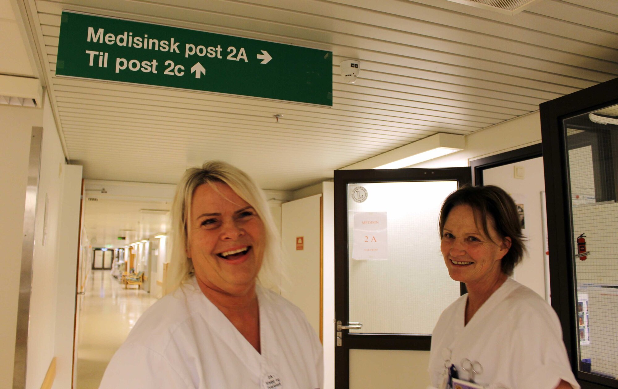 Sykepleierne Siv-Anita Nomedal (53) og Birte Tversland Lia (51) jobber på Medisinsk sengepost 2A. De mener også at sykepleieren er en potet som kan brukes til alt.
