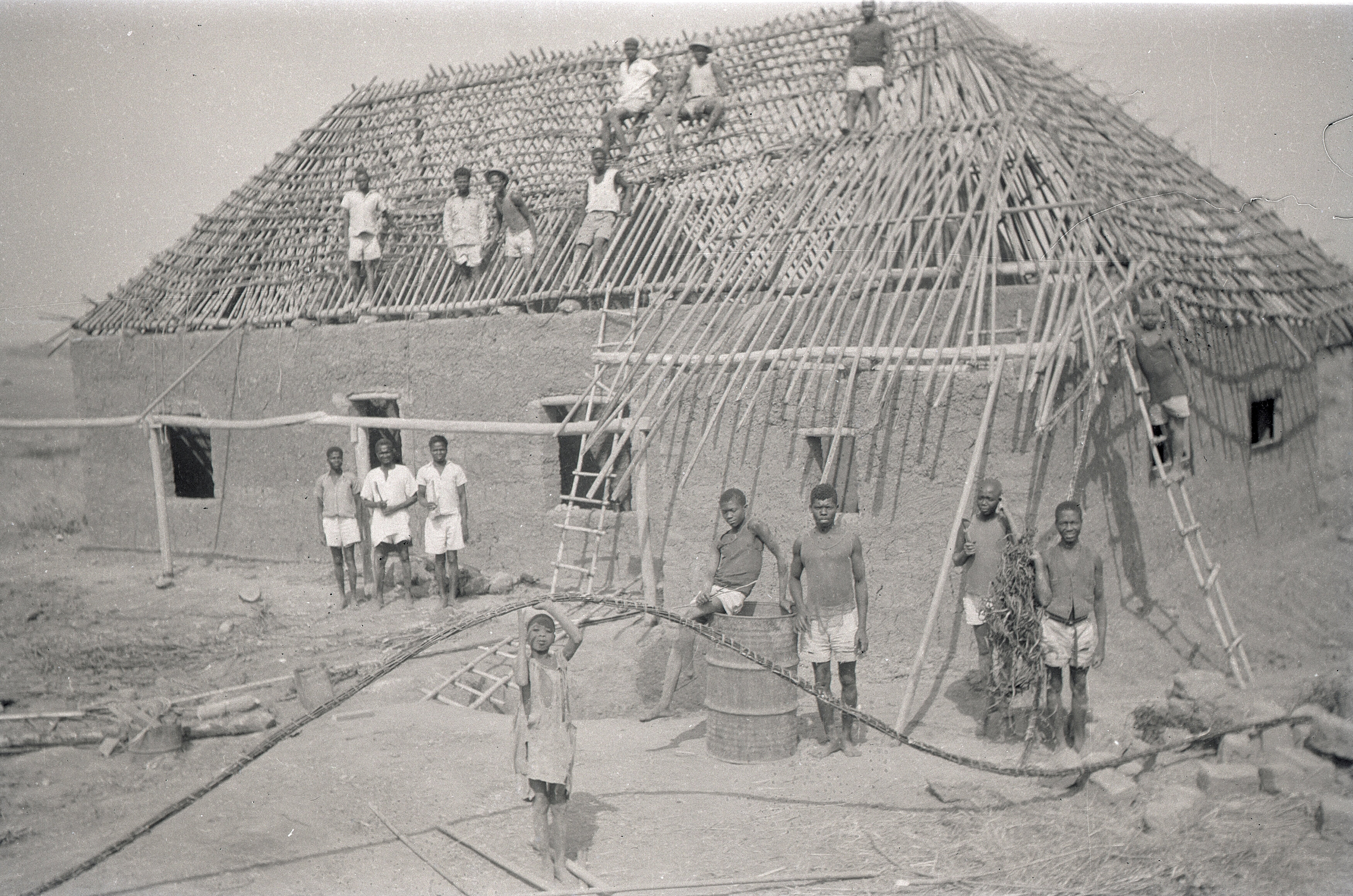 – Byggematerialet er det man går og står på. Jord og stein. Vi blandet jorden med vann, formet det som murstein og tørket den i solen. Jeg hadde med meg elever fra skolene og betalte dem for å hjelpe meg. Vi bandt sammen bambus på taket og la gress på toppen.
