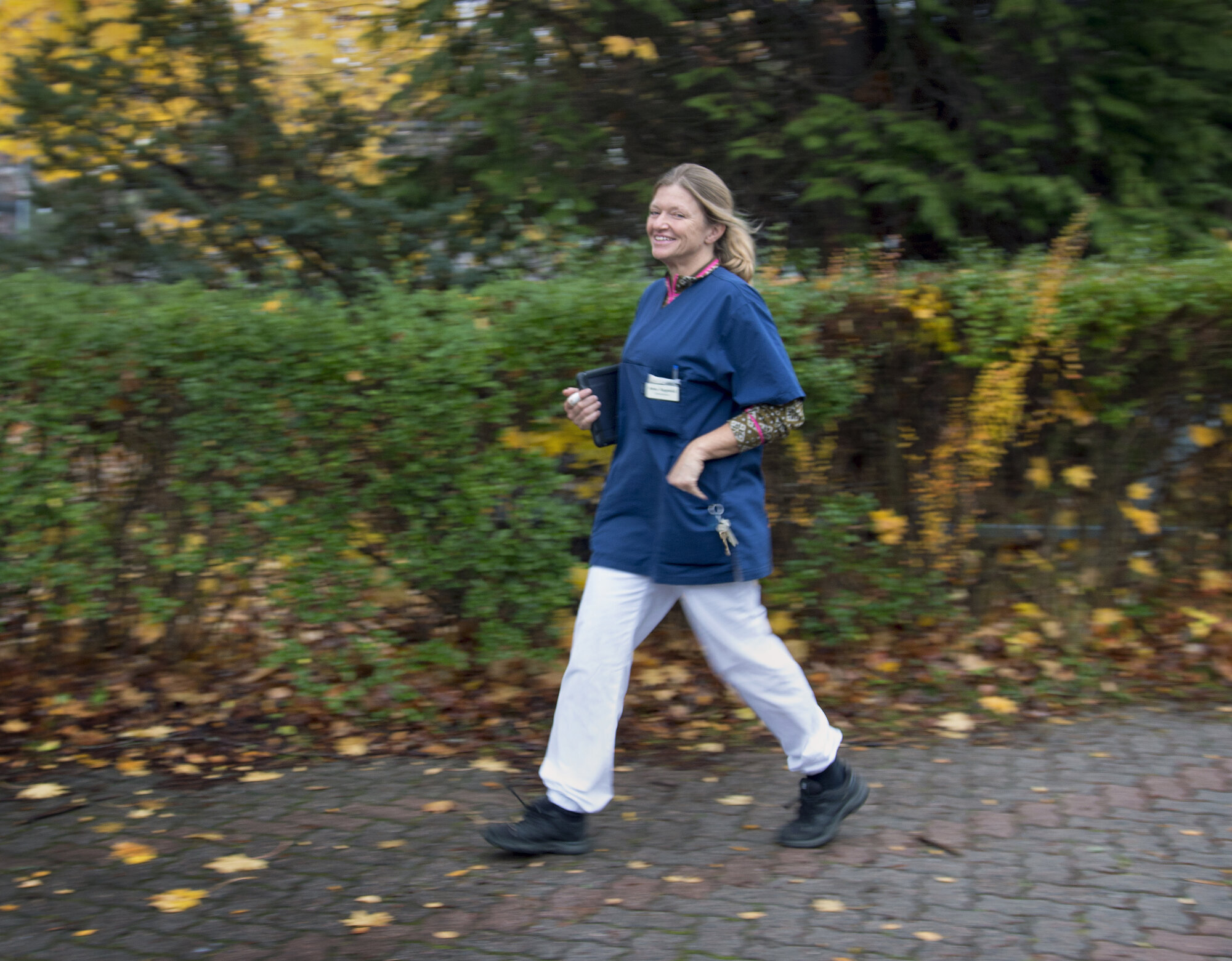 – Jeg tenker ikke på at jeg skulle vært et annet sted når jeg er inne hos en pasient. Hadde jeg gjort det, hadde jeg jo blitt gæren. Da hadde jeg blitt skikkelig stresset, sier hun.