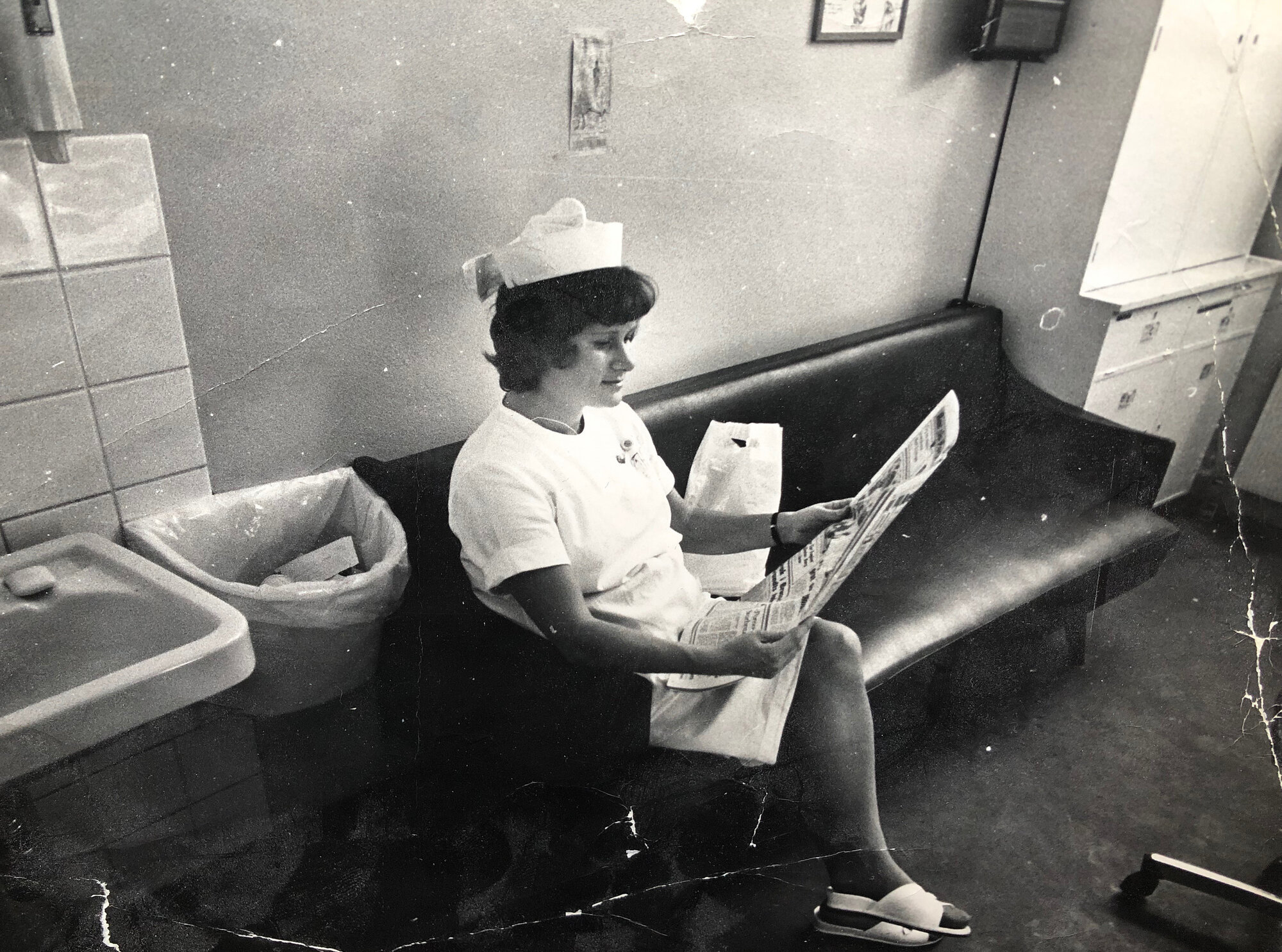 – Vi hadde en ordning hvor portvakten vekket oss etter tur. Vi var to sykepleiere og en sykepleierstudent på nattevakt. I tillegg var det en legestudent og en kirurg. Vi sov, og så ble vi vekket av portvakten når det kom en pasient. Det var ikke så mange som kom, så vi kunne stort sett gjøre oss ferdig med en og en pasient, forteller hun.