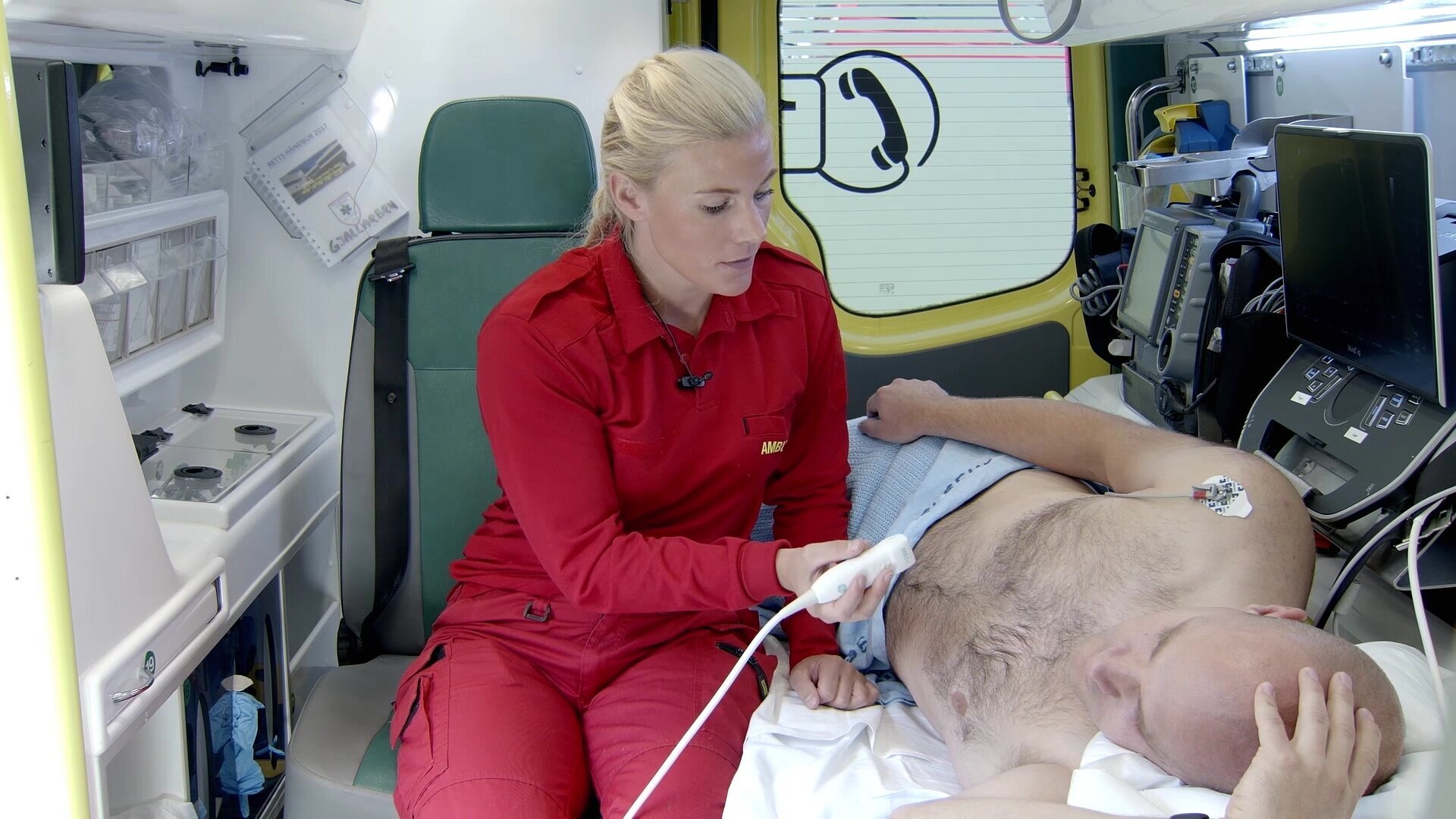 i ambulansen. Dette foregår i Skien og Kristiansand, hvor jeg