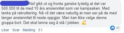 En annen kommenterer: «Hva med 16 års ansiennitet?! Ny sykepleier rett etter skolen – de får 8 års ansiennitet med en gang. 10 års ansiennitet får 53 000 kr i økt lønn. Hva med oss hvem har 16 års ansiennitet? 20-åringer tjener samme som en 50-åring eller mer.»