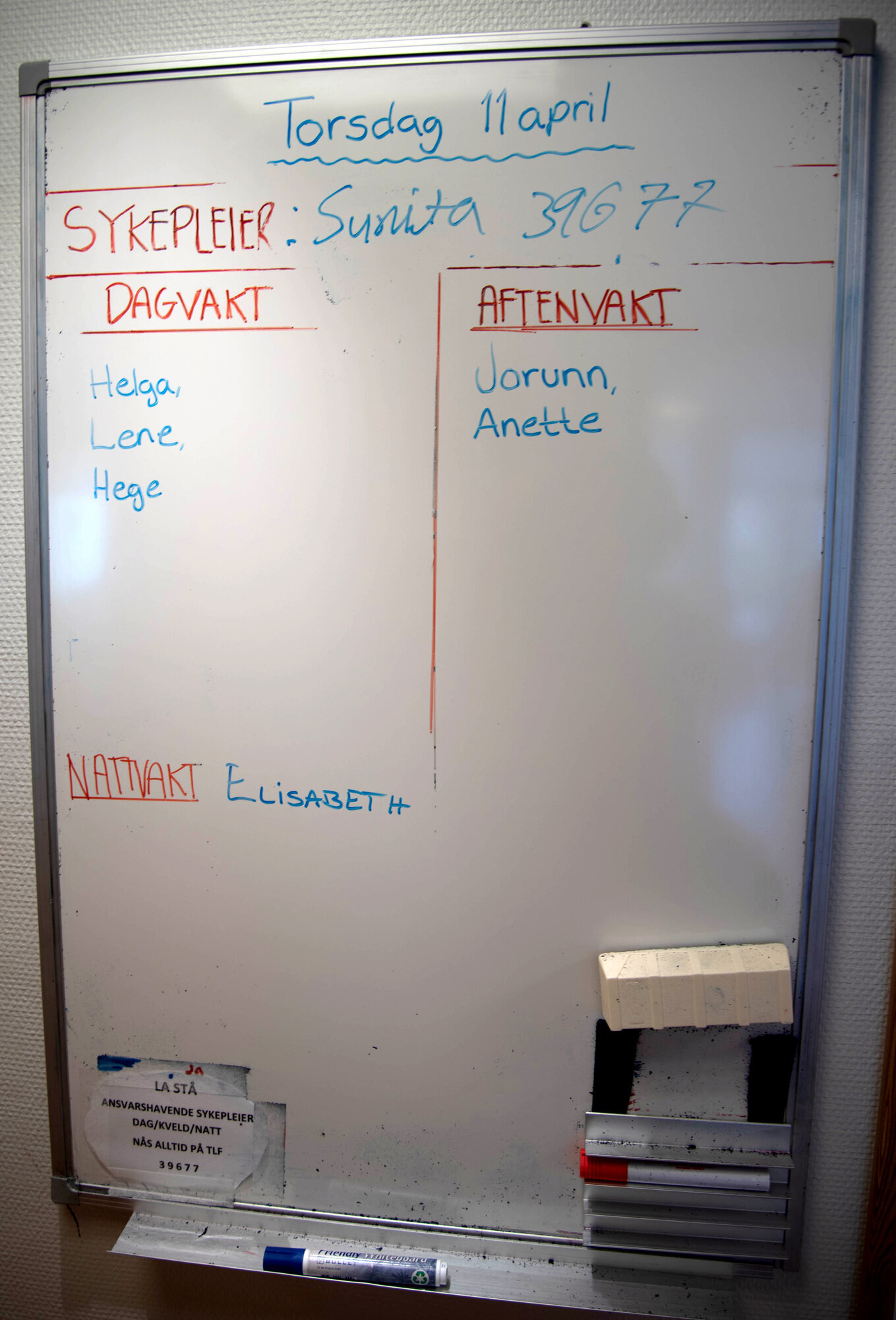 Marie Eidsvik legger til at de ikke benytter bemanningsbyråer, foruten noen ganger når de mangler sykepleier på natt. Sykehjemmet tilstreber å gjøre ringevikarene sine trygge og gode, slik at beboerne slipper å måtte møte nye ansikter så ofte.