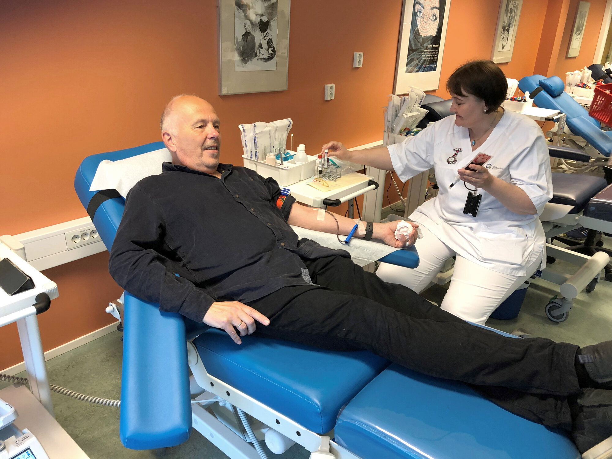Nå gir han blod fordi det trengs blod. Det er heller ikke usunt, mener han, da det opprettholder rød beinmarg. Og skulle han komme ut for en ulykke, har han en kropp som kan reprodusere blod. Han har jo konto i «banken», forteller han.