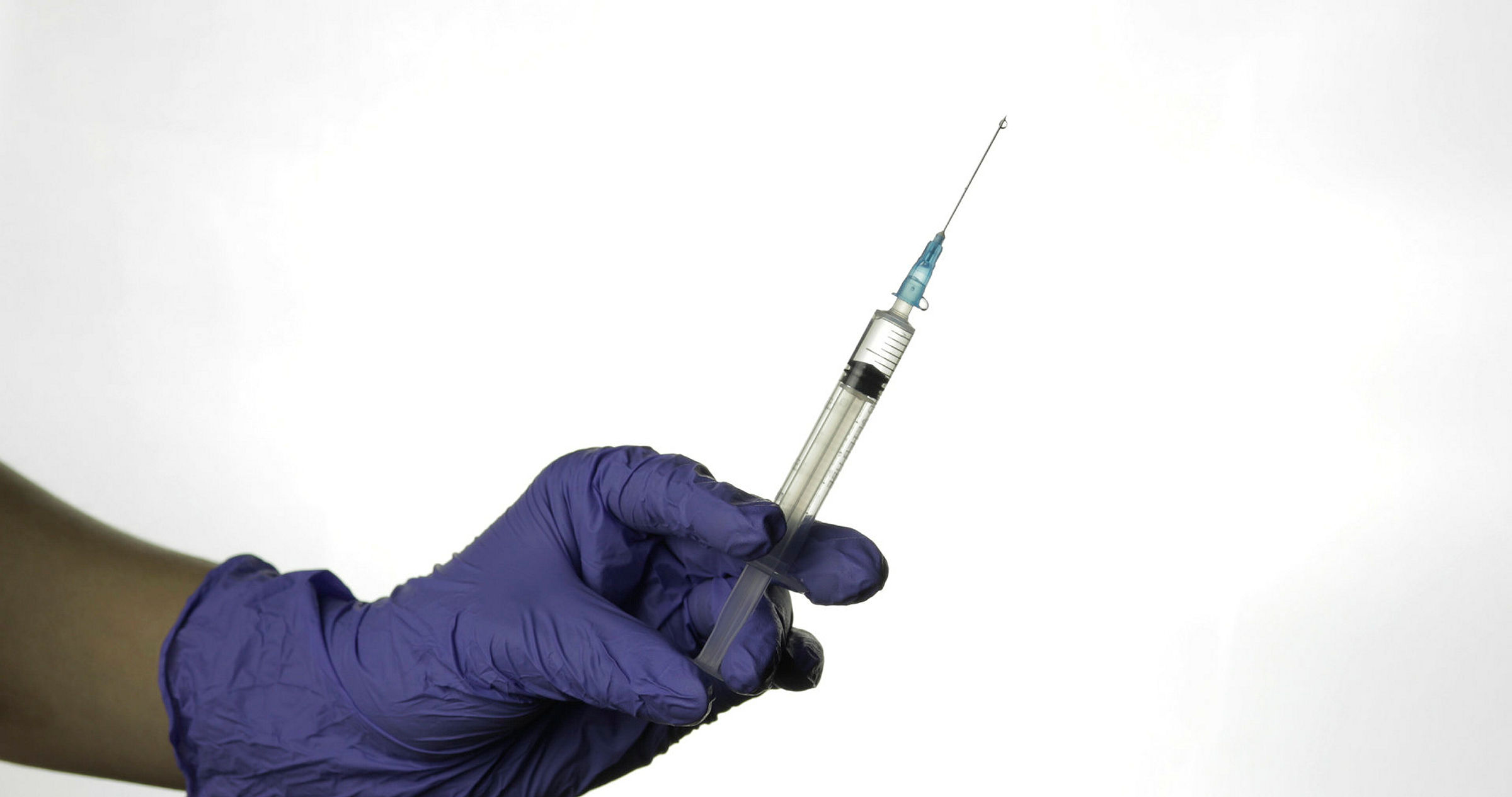 Hånd med hanske som holder sprøyte