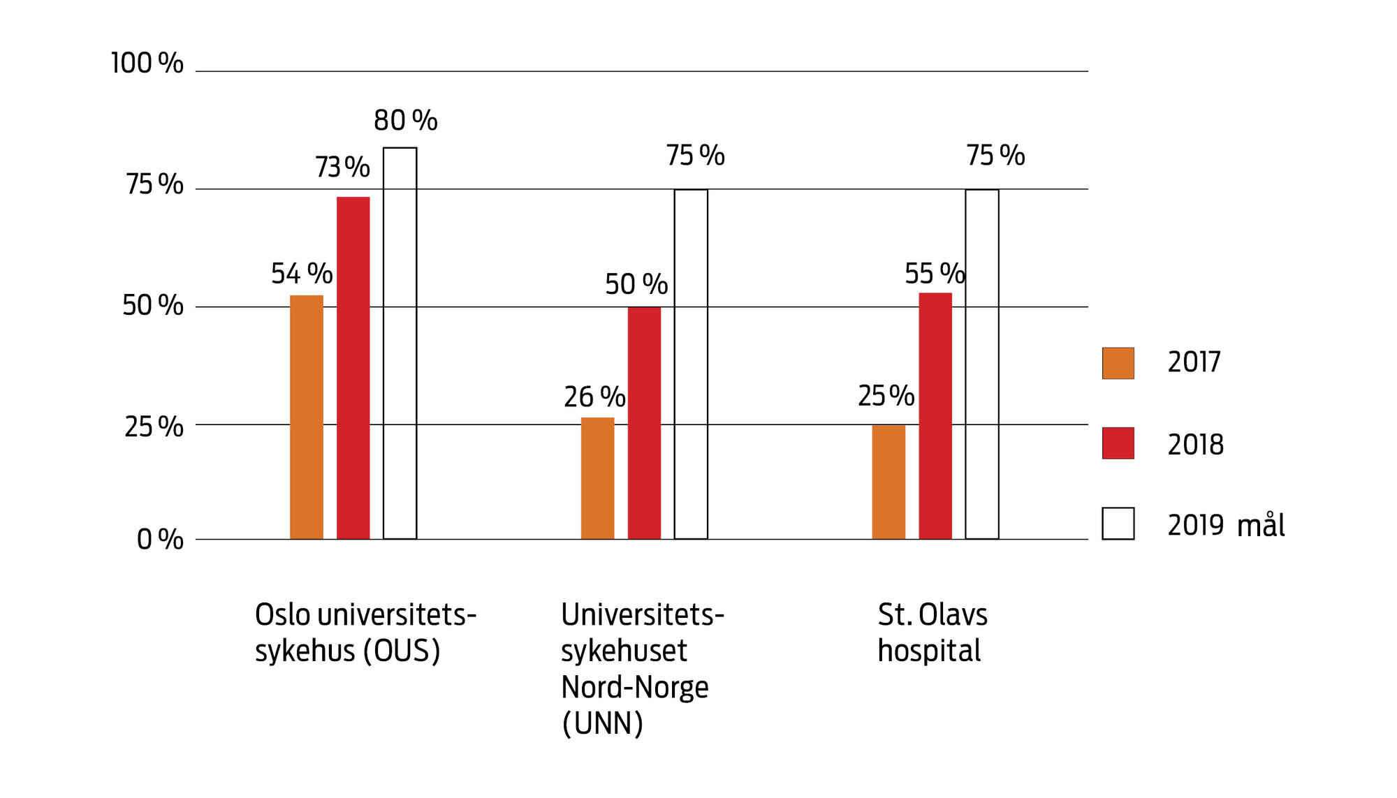 Prosentandel helsepersonell som vaksinerte seg i 2017 og 2018, og ønsket prosentandel for 2019.