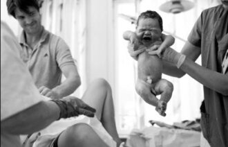 Fedrene får råd om hvordan de kan hjelpe til. Hun forbereder dem på at å føde er et maraton.