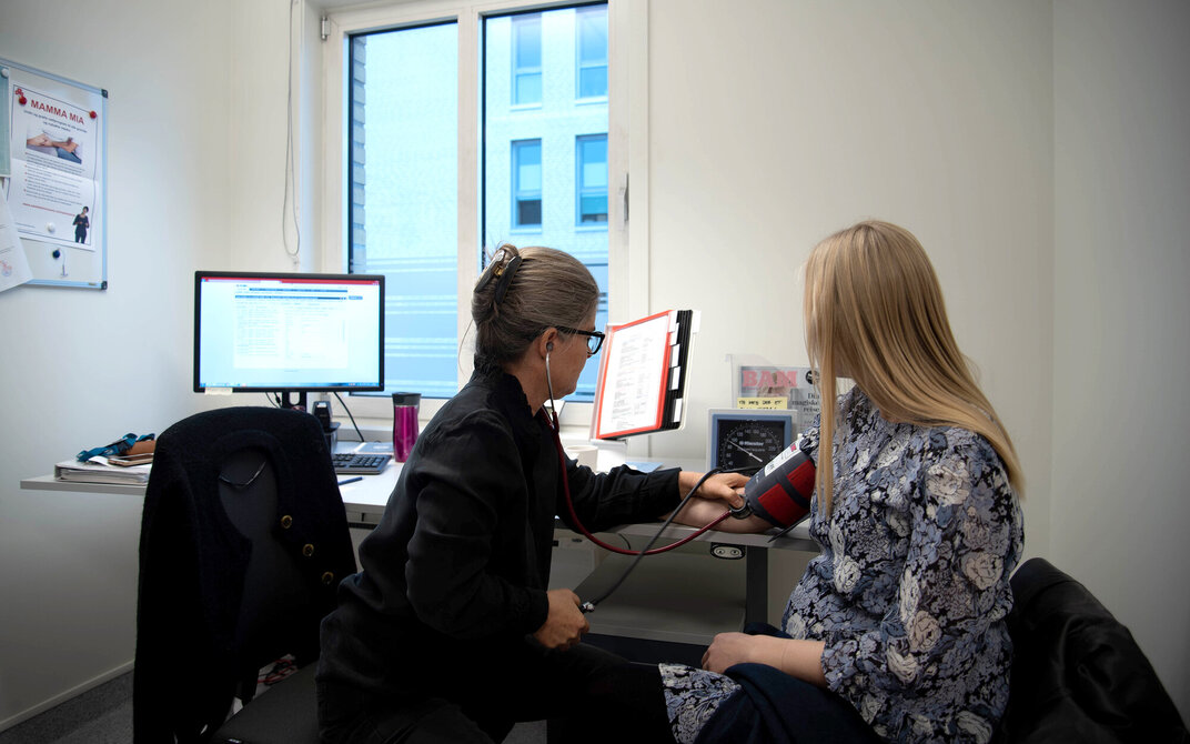 På hjemmebesøk snakker de om fødselen, endringer i kvinnekroppen, veileder om amming og veier barnet.