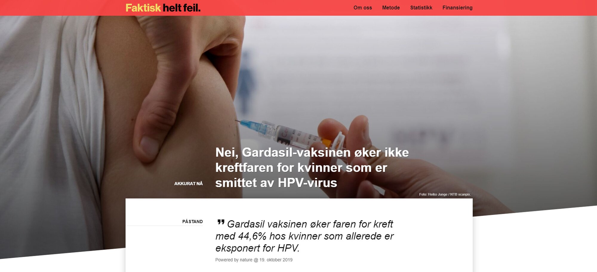 Faktisk.no: Nei, Gardasil-vaksinen øker ikke kreftfaren for kvinner som er smittet av HPV-virus