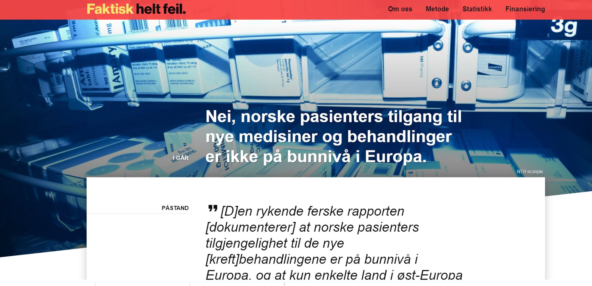 Faktisk.no: Nei, norske pasienters tilgang til nye medisiner og behandlinger er ikke på bunnivå i Europa
