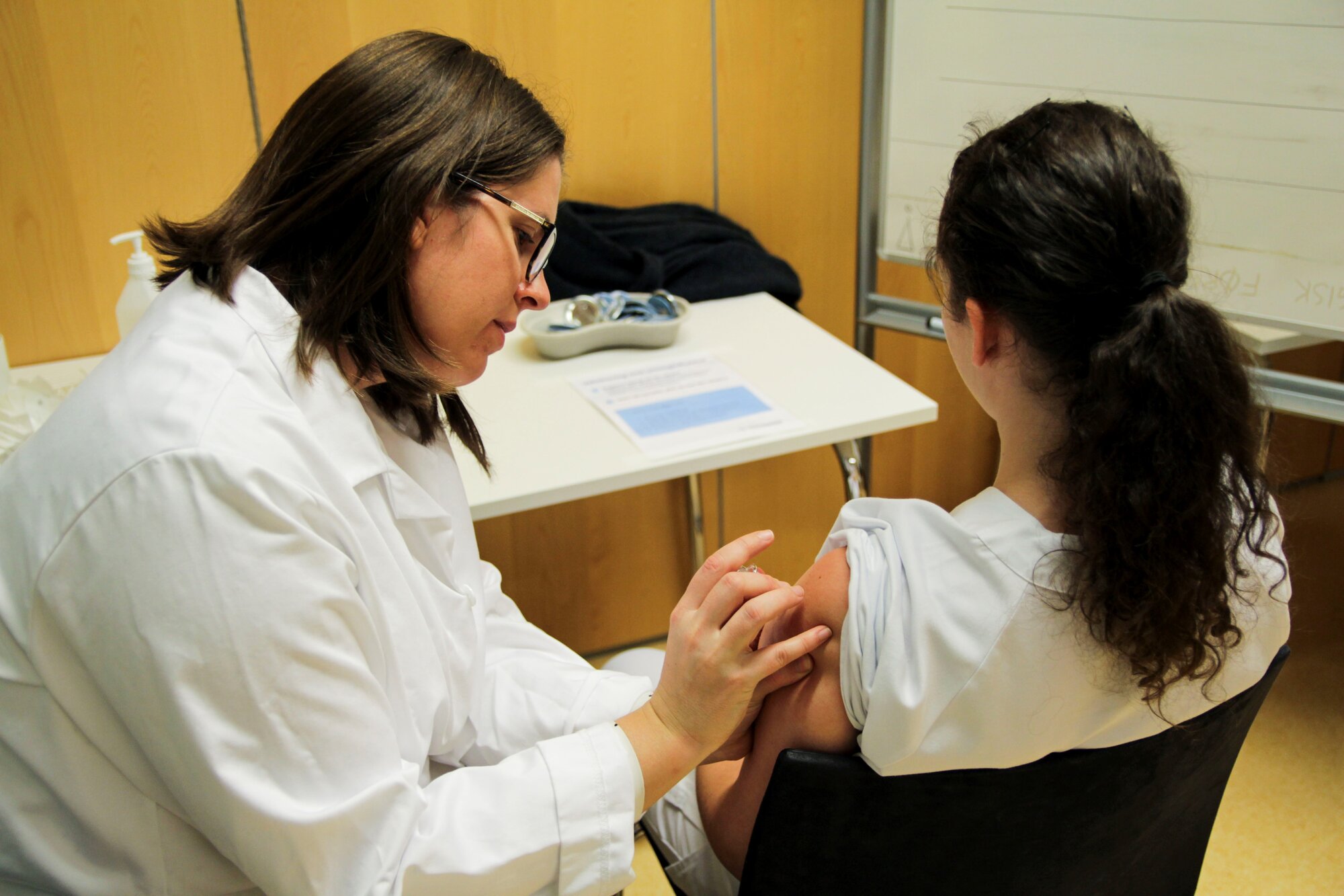 – Jeg synes det er veldig skummelt. Jeg stikker jo andre, og jeg hadde epidural i fjor uten problem, men akkurat vaksinen er jeg litt redd for. Men det gikk bra! Nå er det gjort, sier hun med et lettelsens sukk.