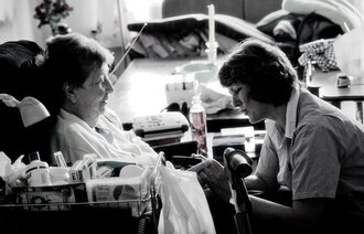 Hun måtte lære å ta blodtrykk, puls, respirasjon og oksygenmetning. Hennes viktigste oppgave var å ringe sykehuset om han ble dårlig.